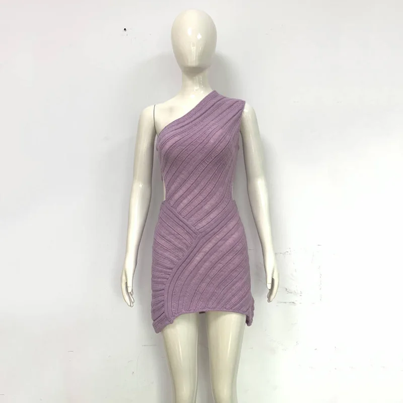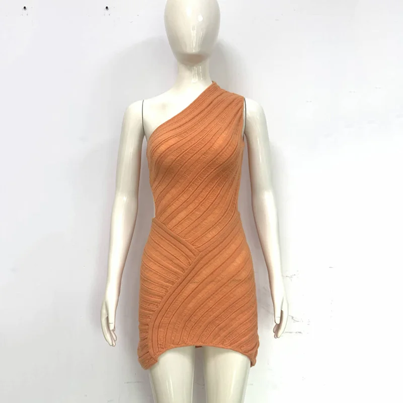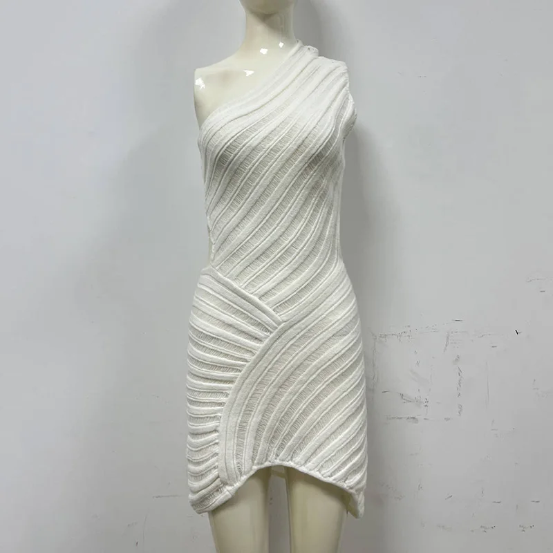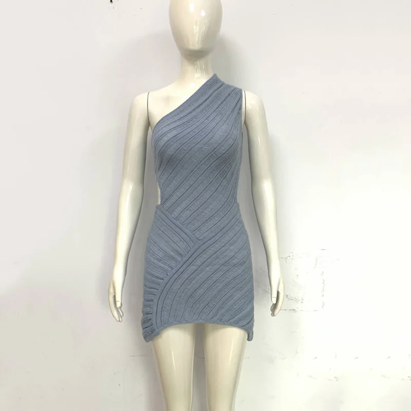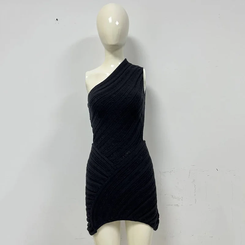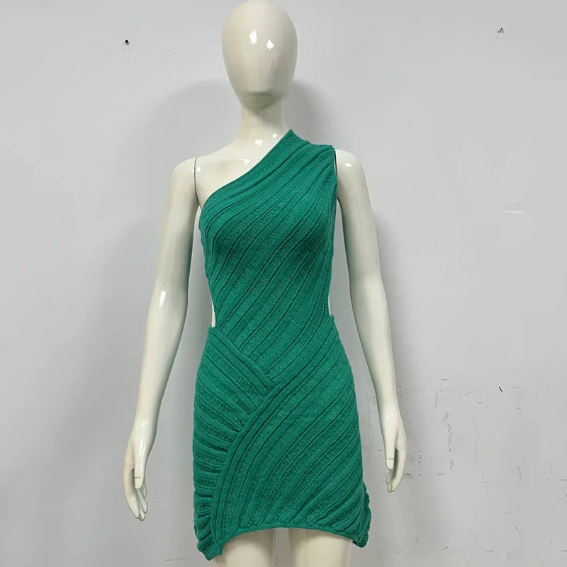 Women Y2K Crochet Knitted Dress One Shoulder Hollow Out Backless Bodycon Mini Sweater Dress Cutout Summer Beach Dress