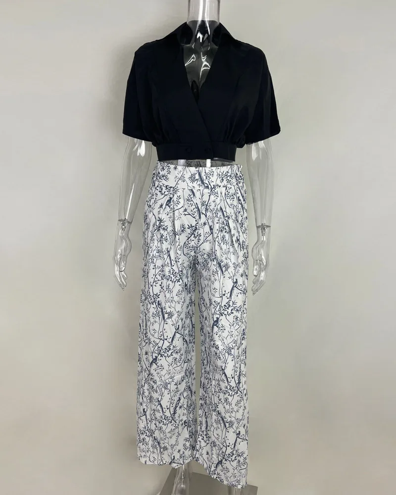Women'S ANSZKTN V-Neck Short Shirt Print Fashion Casual Set