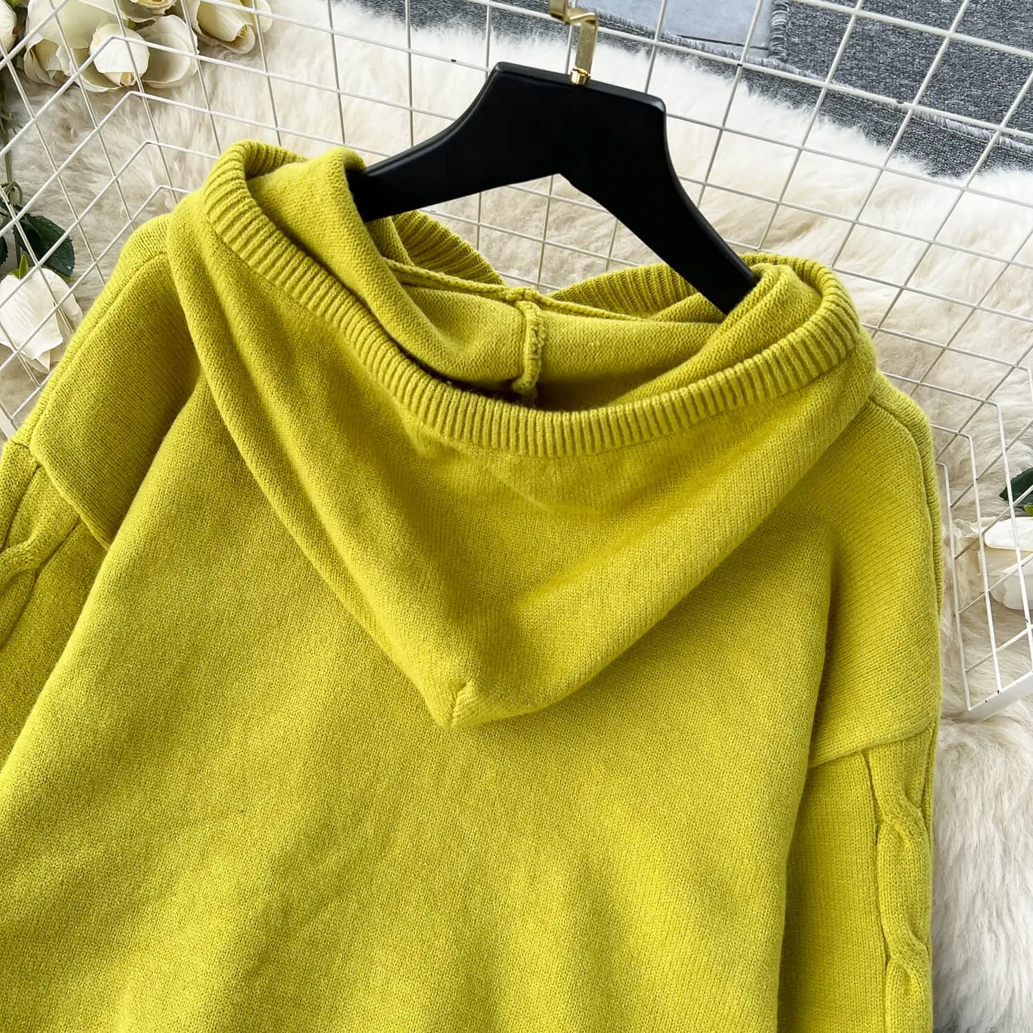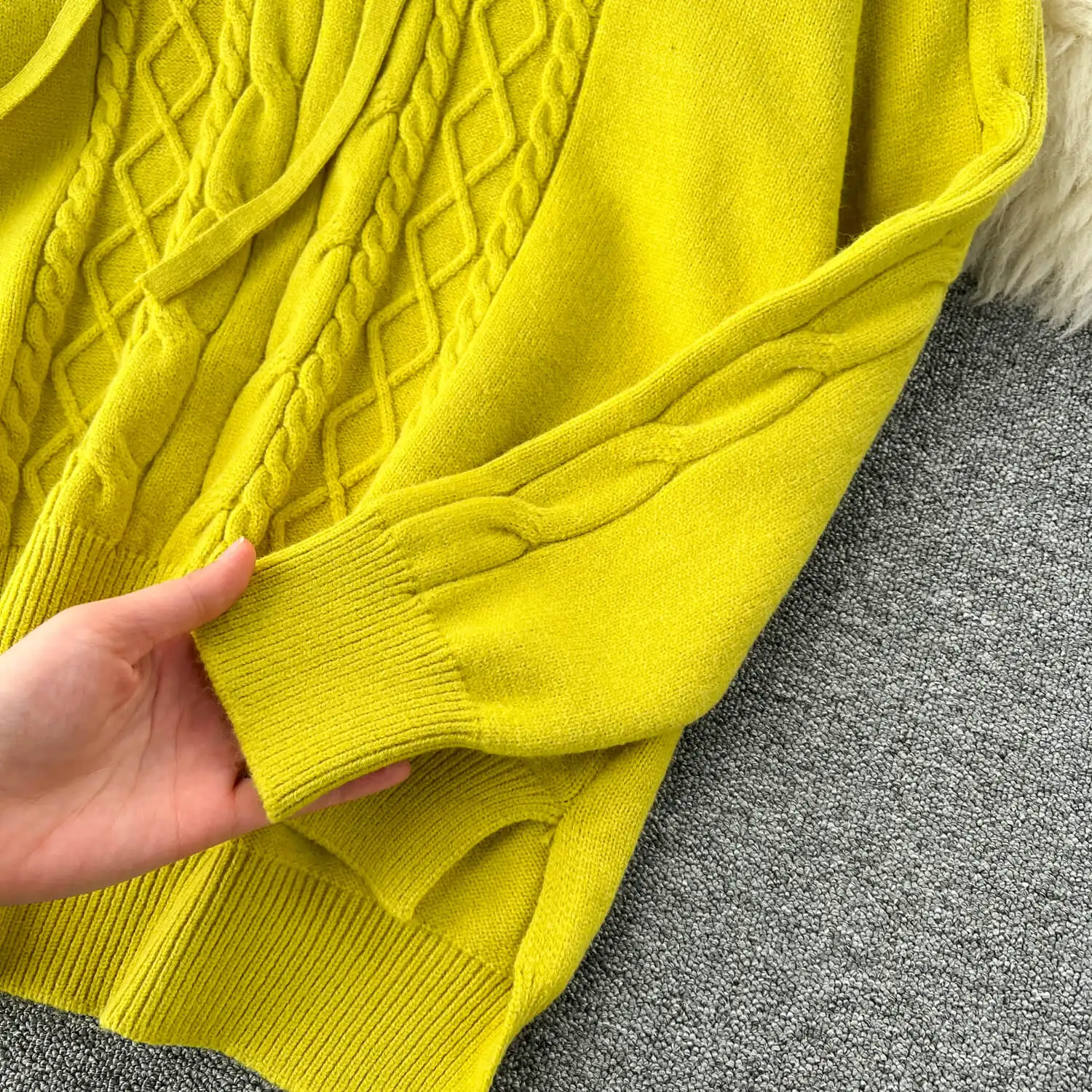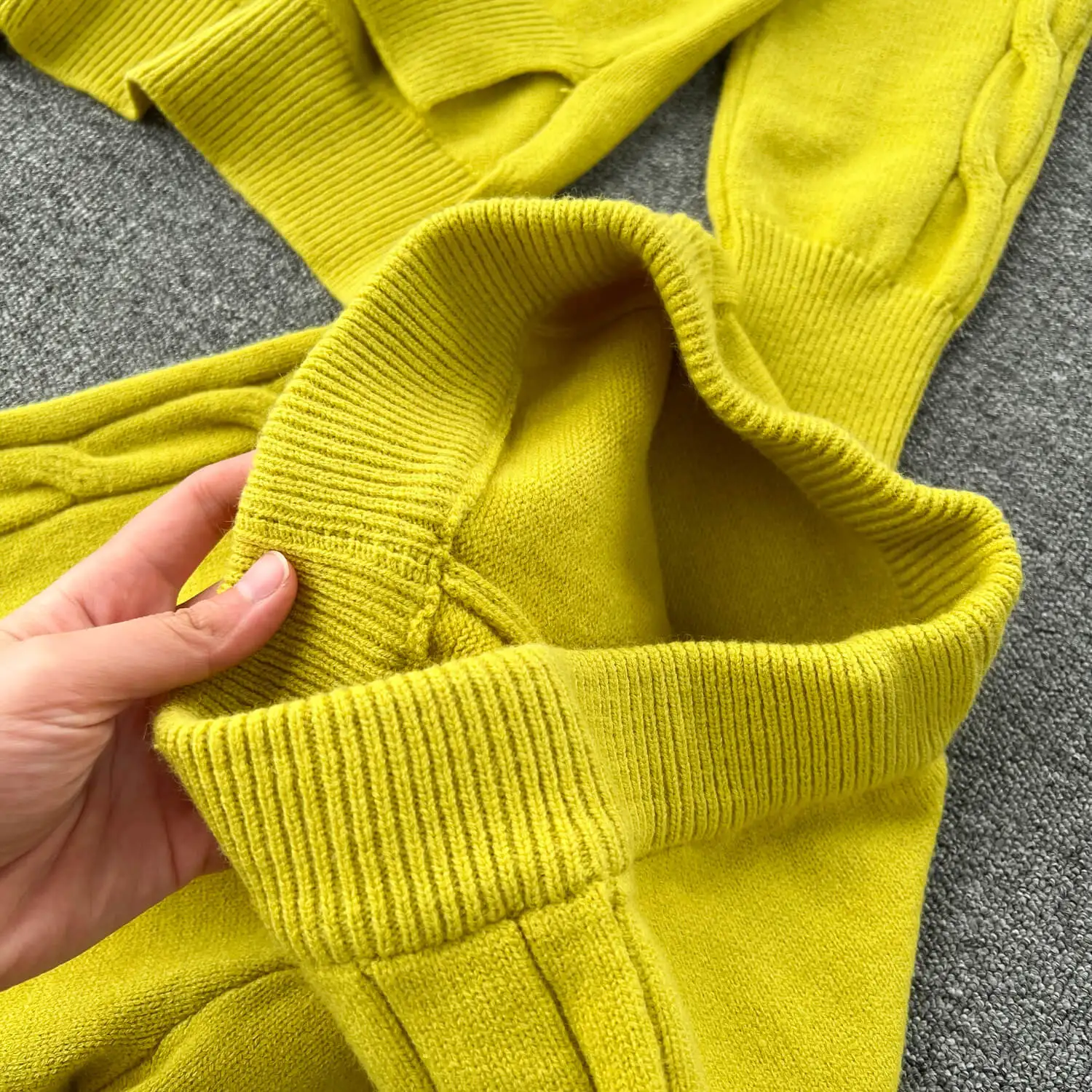 Women's Autumn Winter Loose Twist Knit Hooded Pants Fashion Casual Sports Set