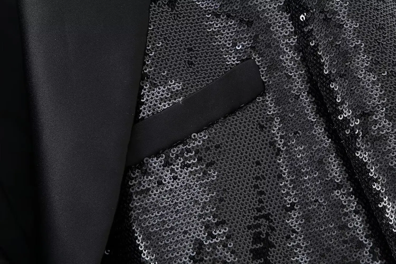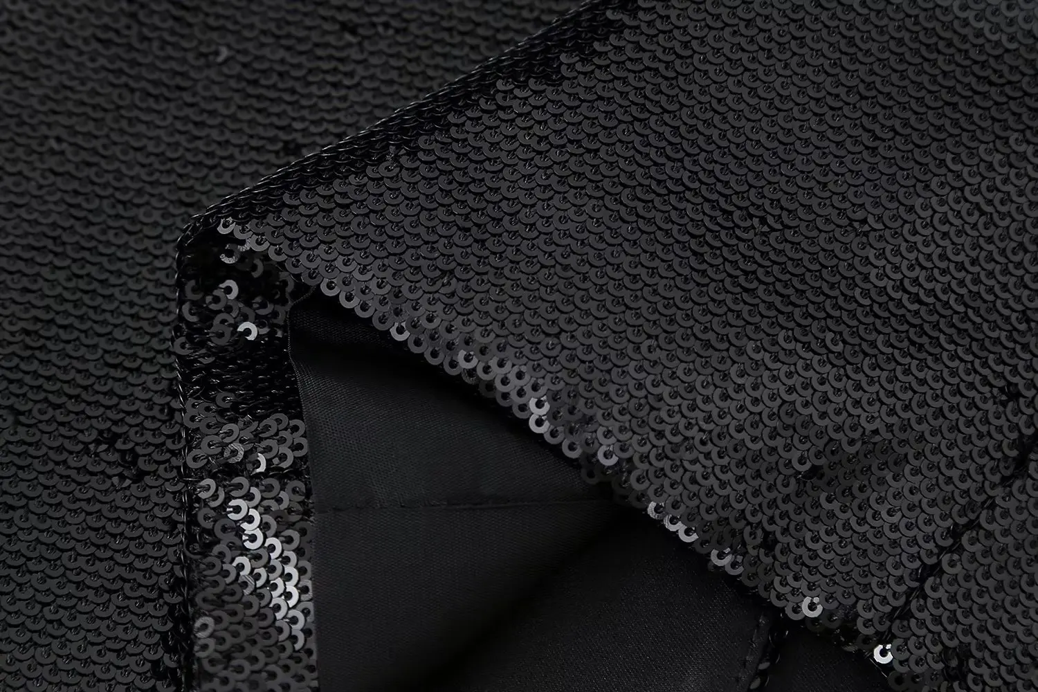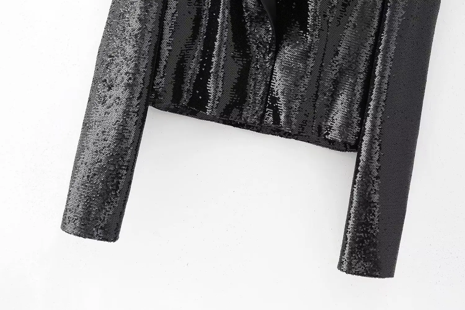 Women's beaded dress style suit jacket+sequined high waisted casual shorts set