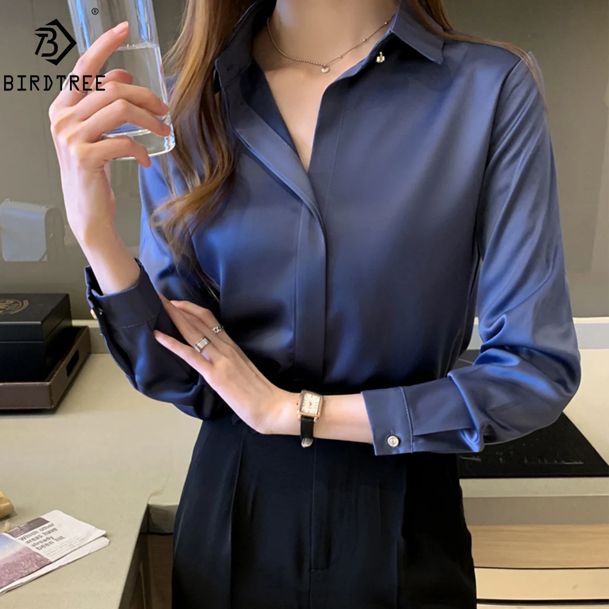 Women's Blouse NewNew Satin Blouse Women Casual Solid Tops Shirts Blouses Female Loose Autumn Fall Ladies Office Top T24807X