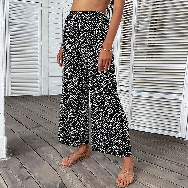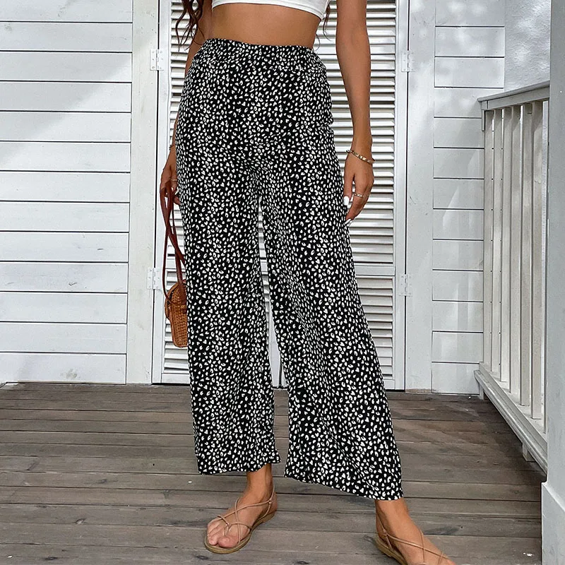 Women's Casual High Waist Leopard Print Wide Leg Ladies Pants