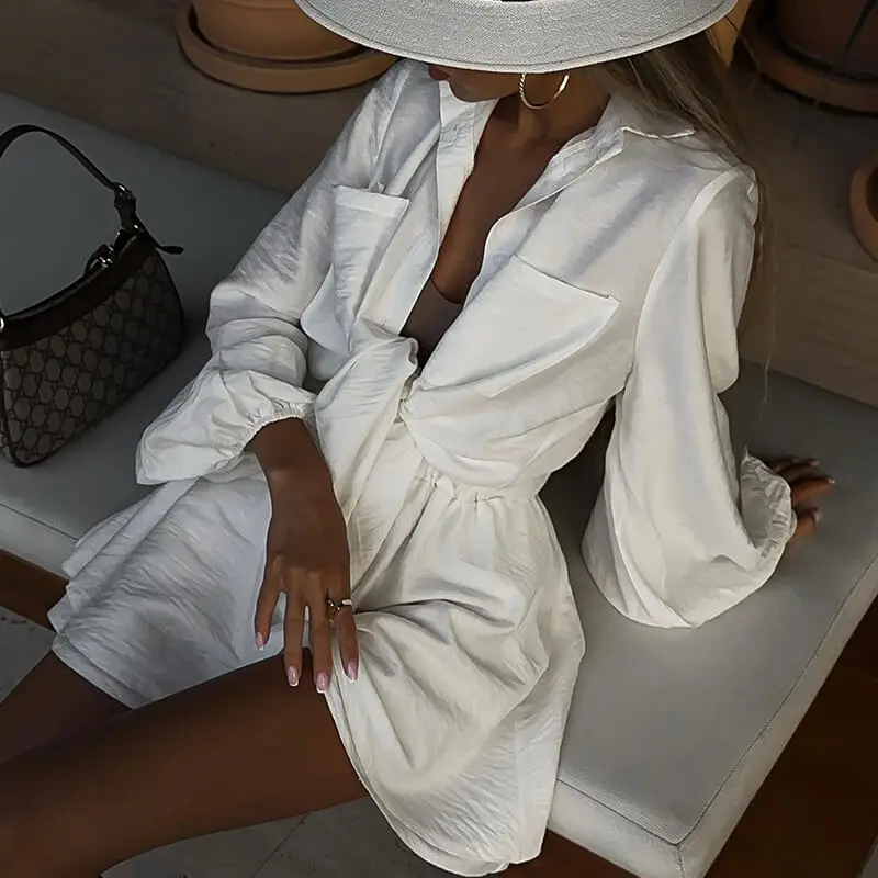 Women's casual set 2023 autumn new style temperament solid color bubble sleeve shirt and wide leg shorts sets