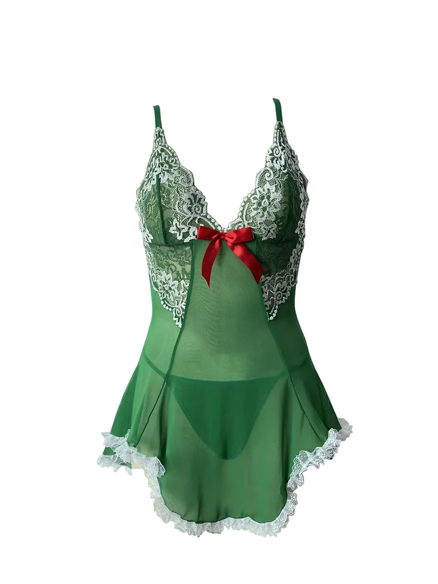 Women'S Christmas Nightgown Green Avidlove Lingerie Set Lace Mesh See Through Cami Lingerie Teddy Bear Lingerie