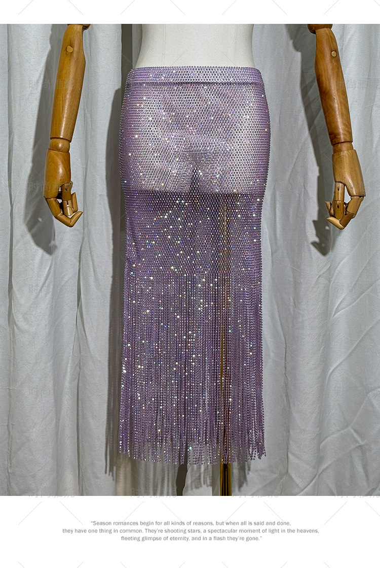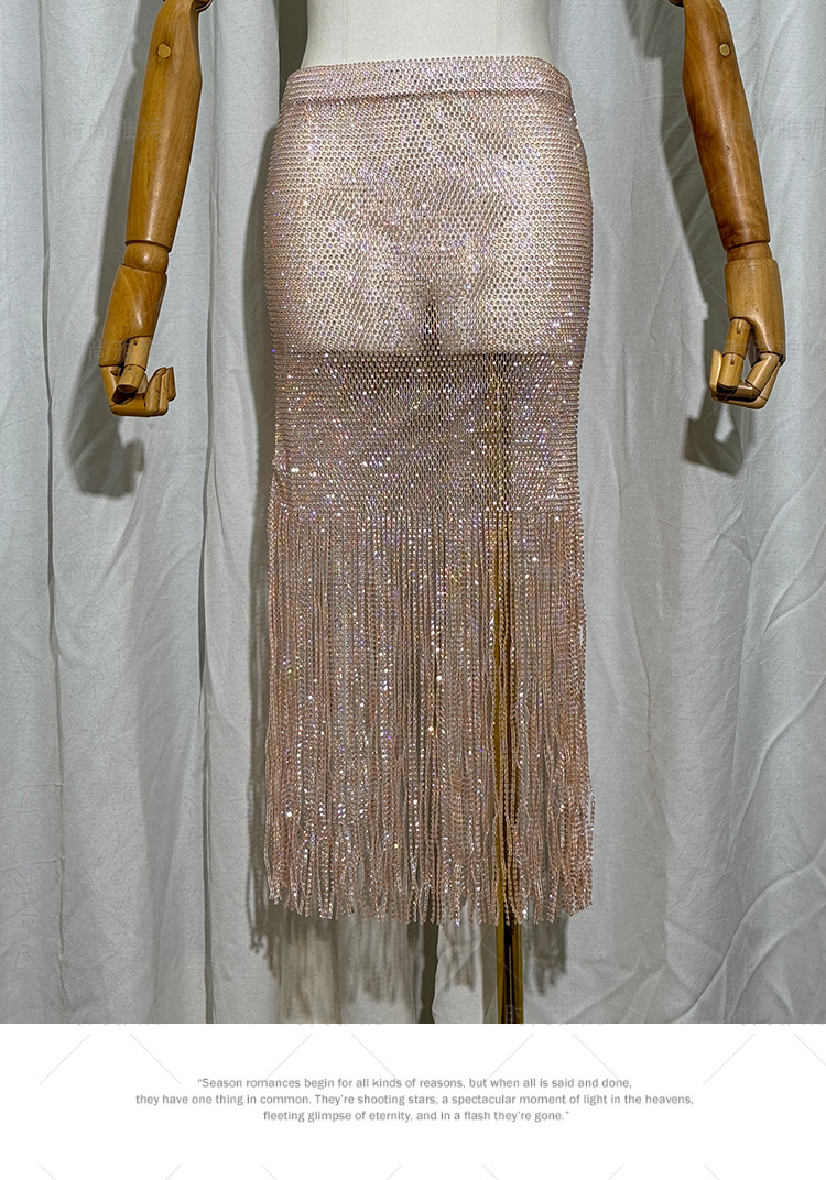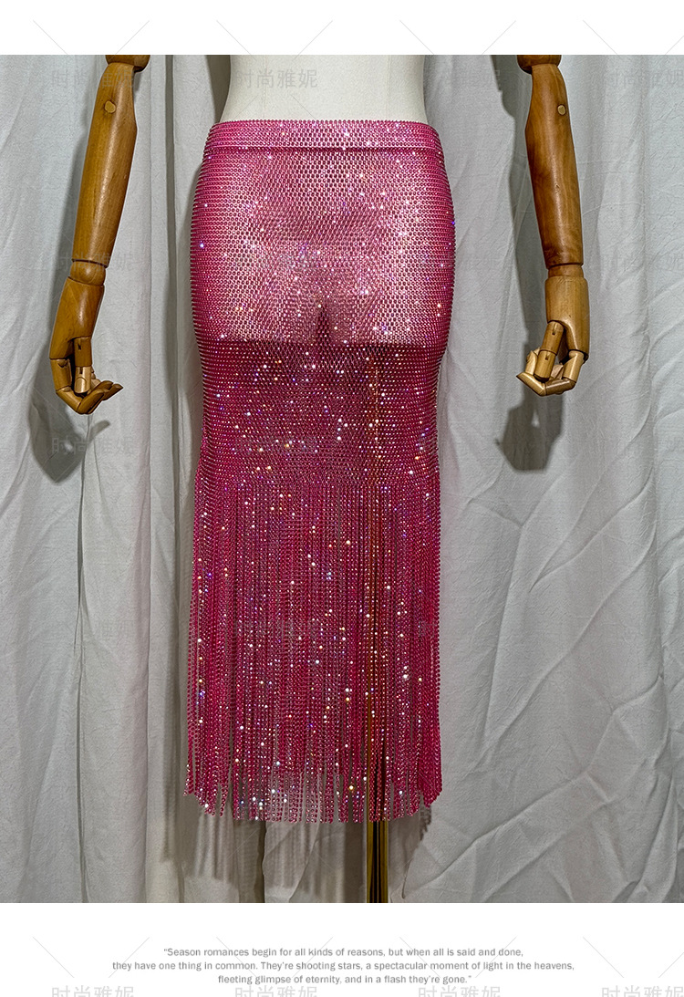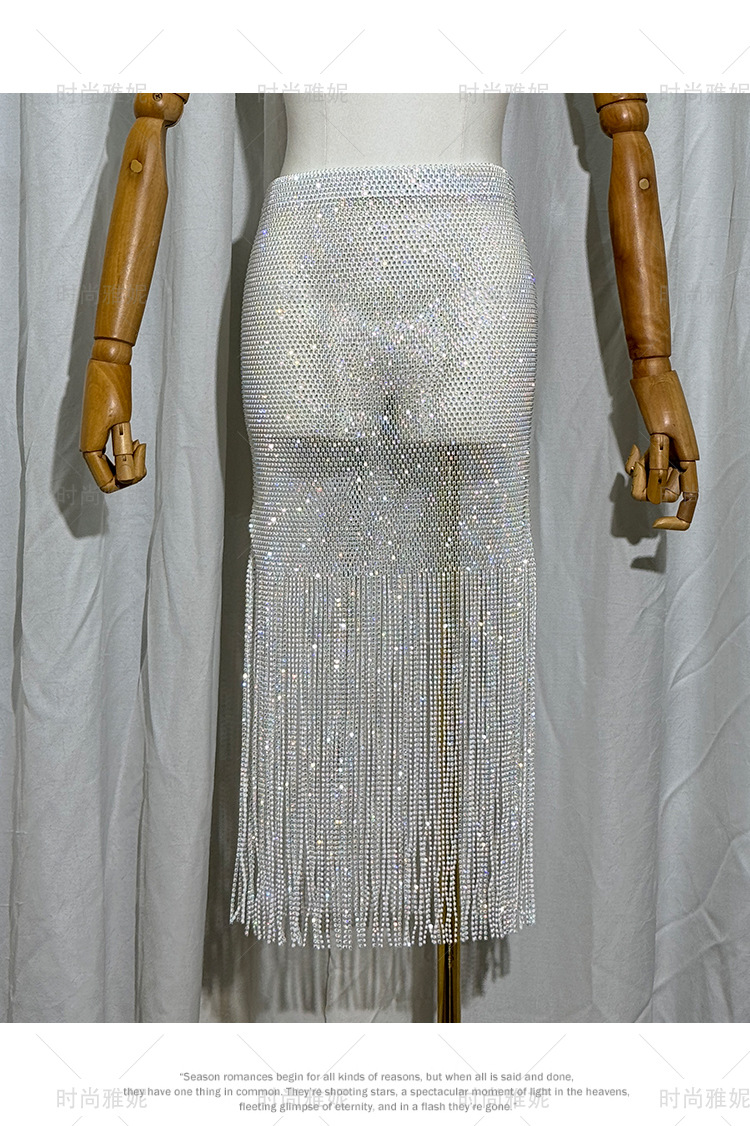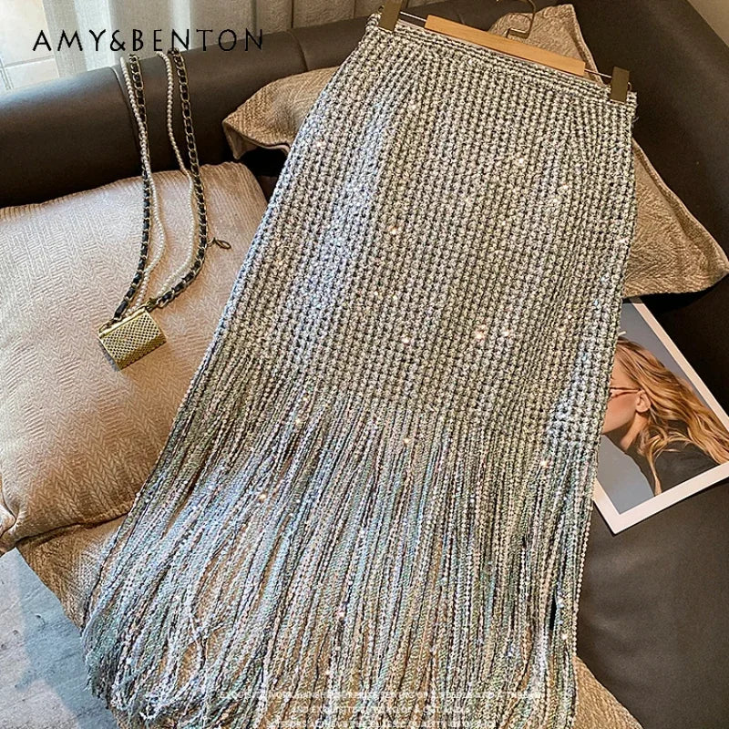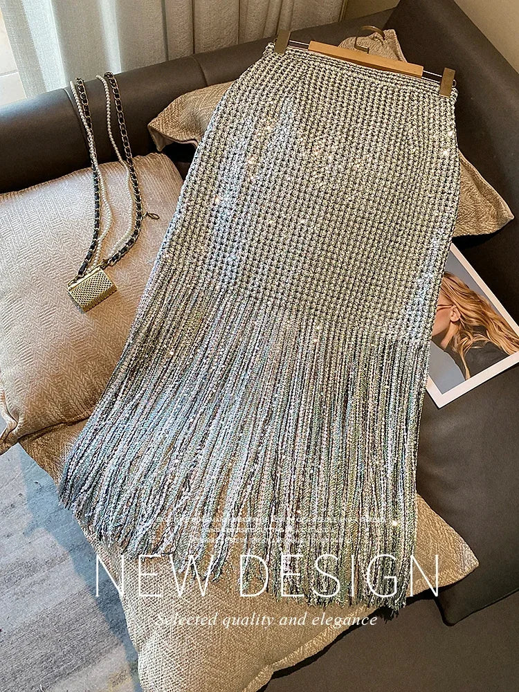 Women's Clothes High Waist Skirt Winter 2025 Early Autumn New Socialite Light Luxury Heavy Embroidery Sequins Tassel Midi Skirts