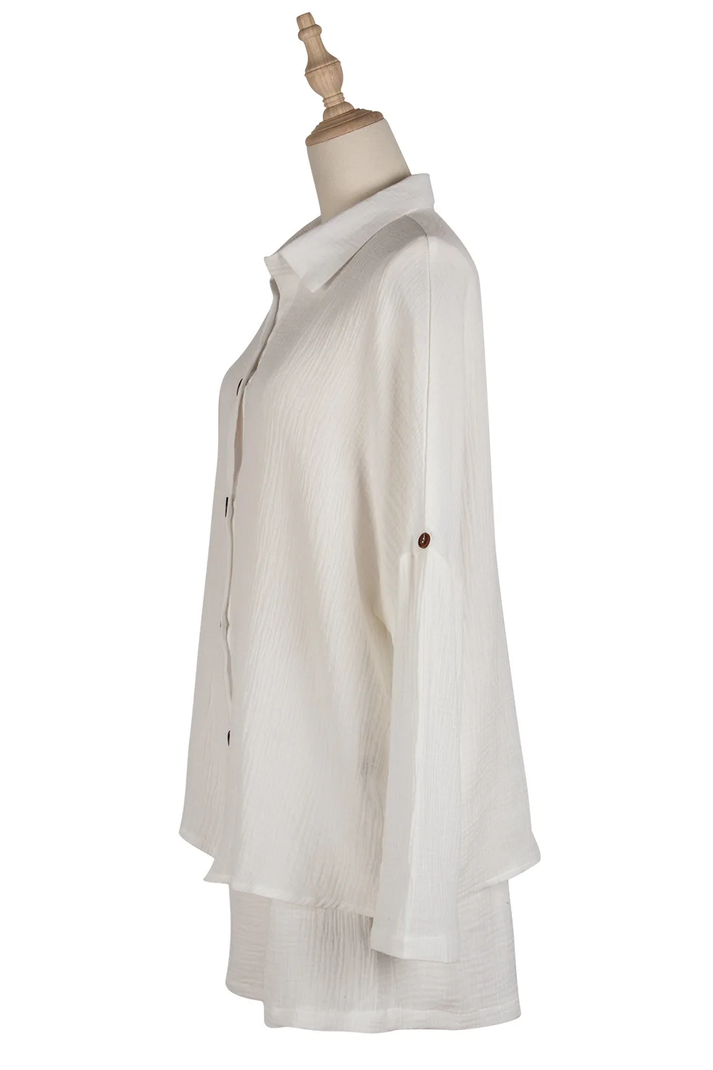 Women's Clothing Casual Suit Summer 2022 New Long-Sleeve Rib Button White Shirt Top Cotton Linen Shorts 2 Two Piece Sets Outfits