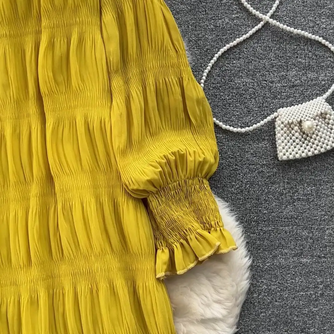 Women's Crew-Neck Pleats Loose Slimming Elegant Maxi Dress