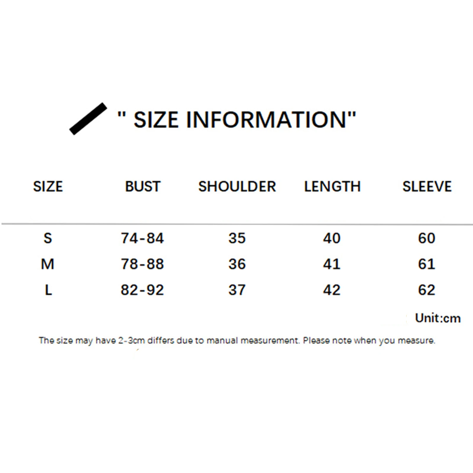 L Length: 16.54 Bust: 32.28-36.22 Sleeve: 24.41 Shoulder: 14.57