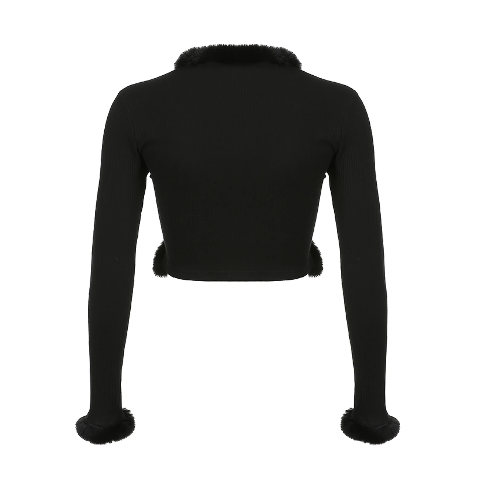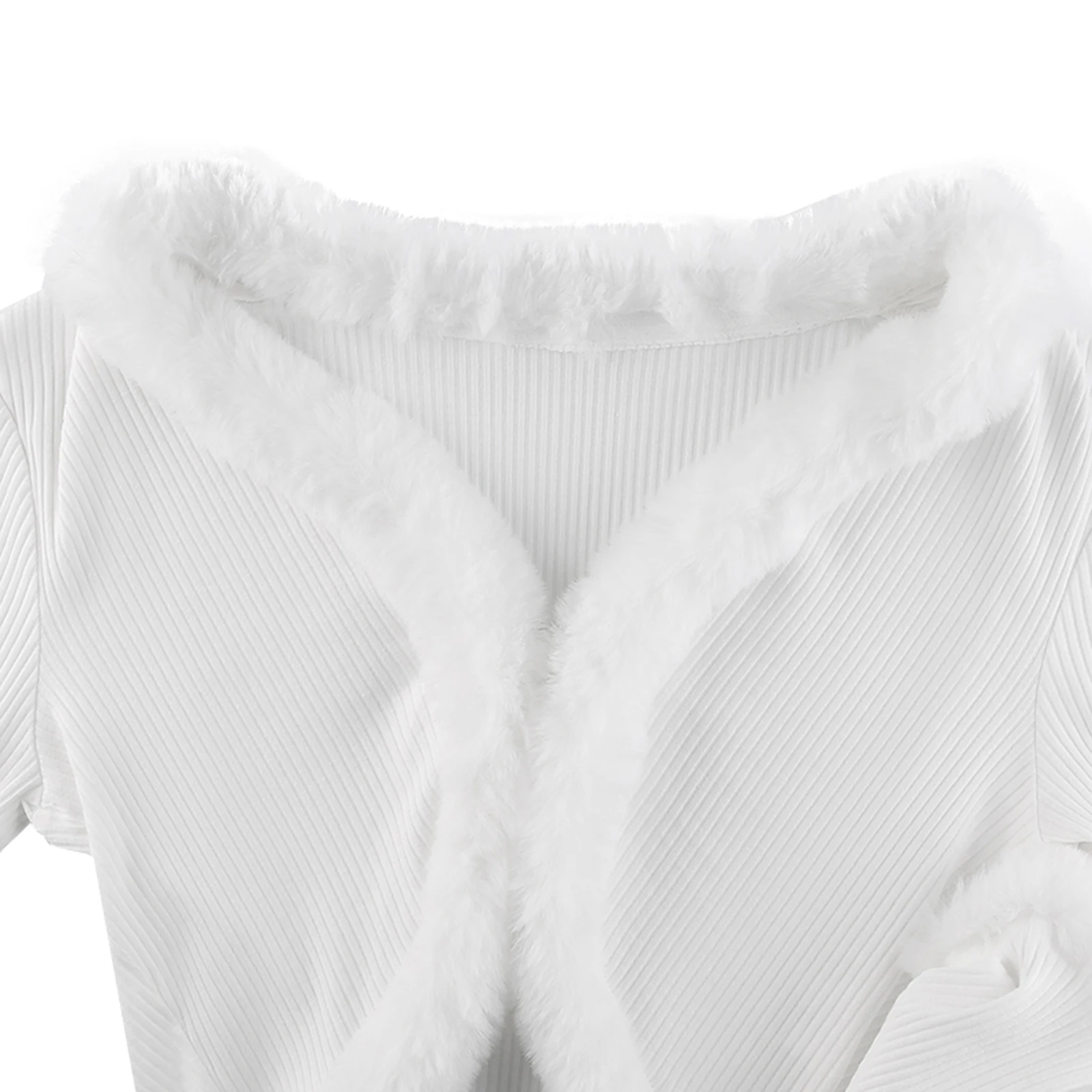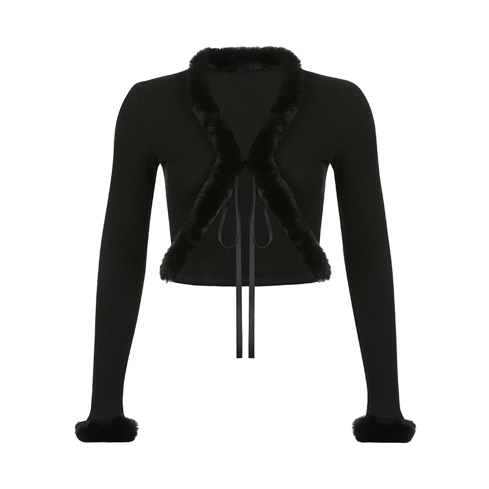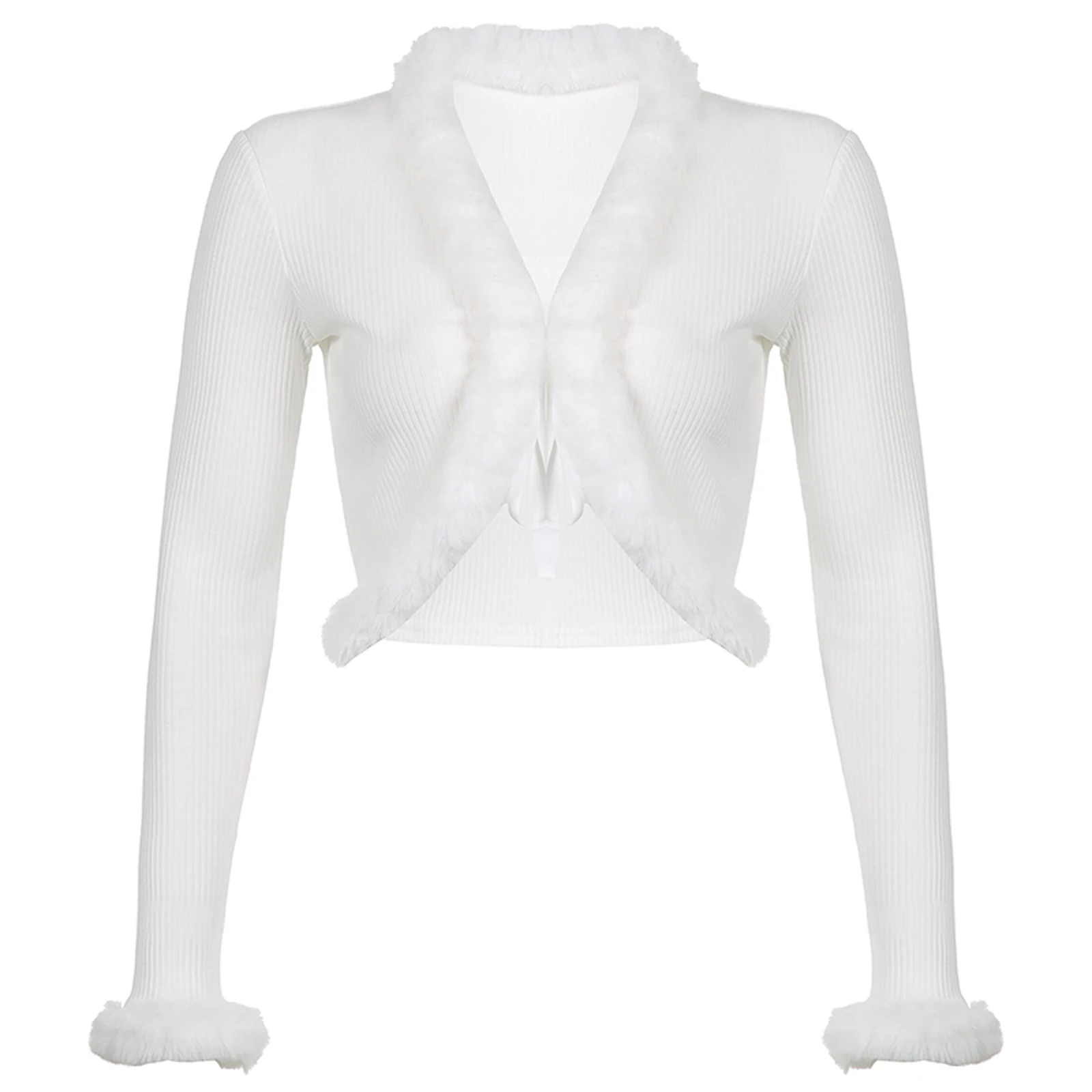 Women's Cropped Shrug Fur Collar Casual Solid Color Knitted Long Sleeve Cardigan Coat Tops Streetwear Temperament Commuter Tops
