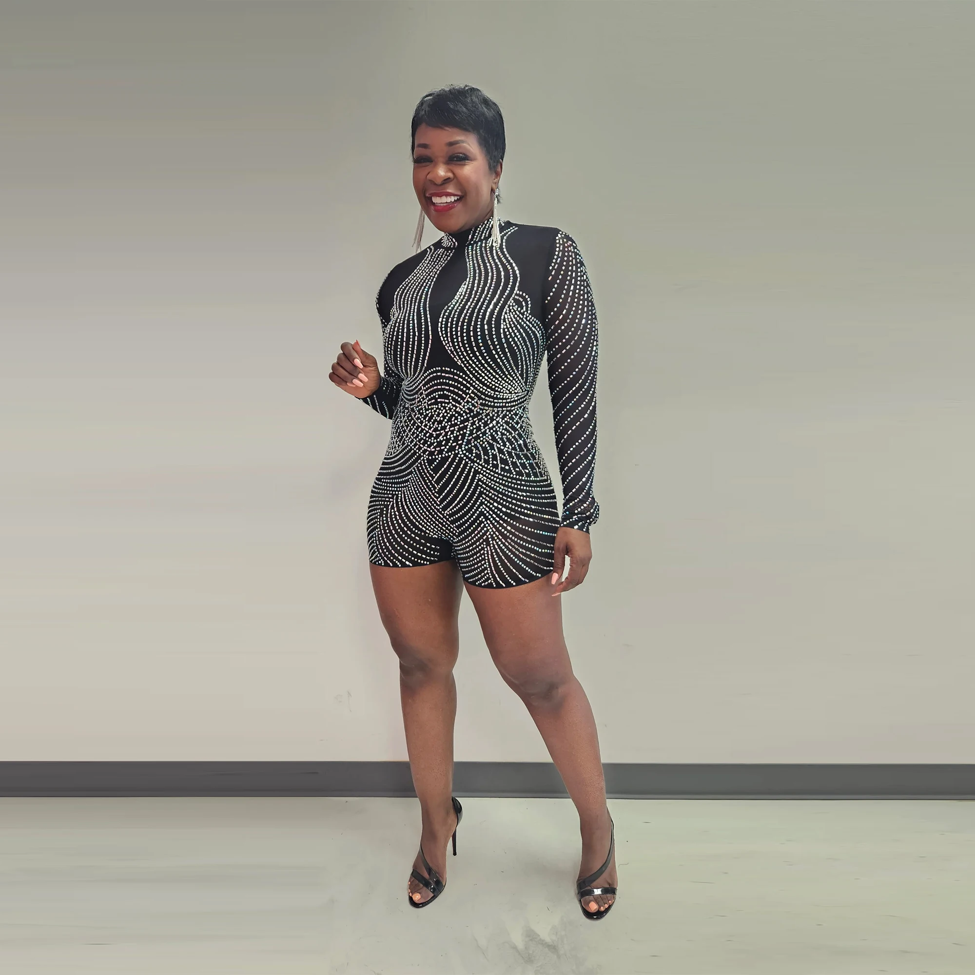 Women's elegant bandage beaded jumpsuit with short pants overalls for party wear