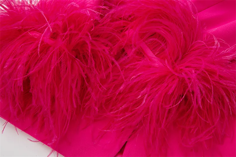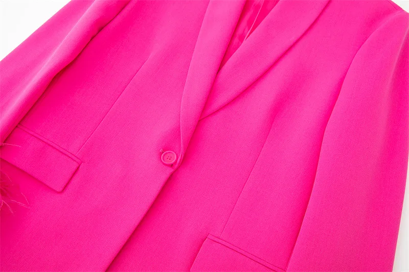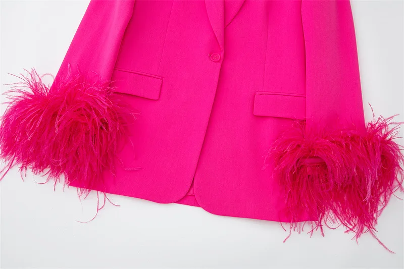 Women's Fashion Feather Blazer Ladies Suit Single Button Business Party Long sleeve Jacket With Fur