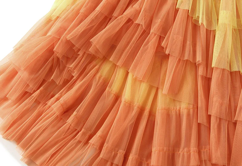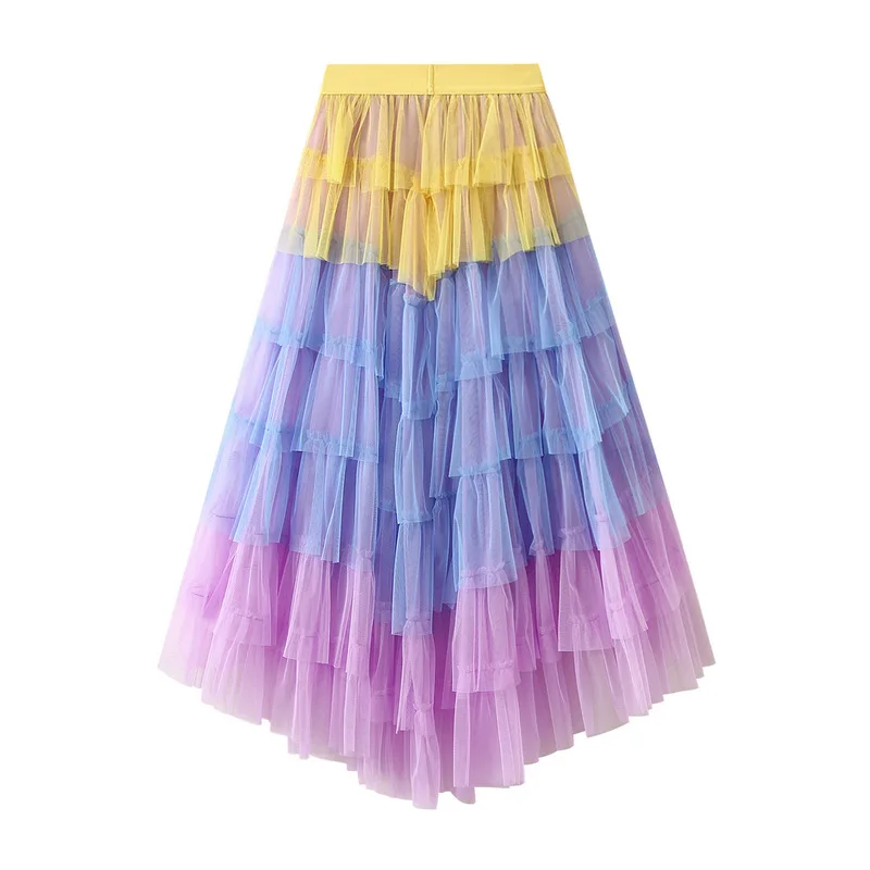 Women's Irregular Ball Gown Mesh Skirts New Fashion Spell Color Elegant Princess Fairy Cupcake Skirt Kpop Tulle Tutu Maxi Skirt