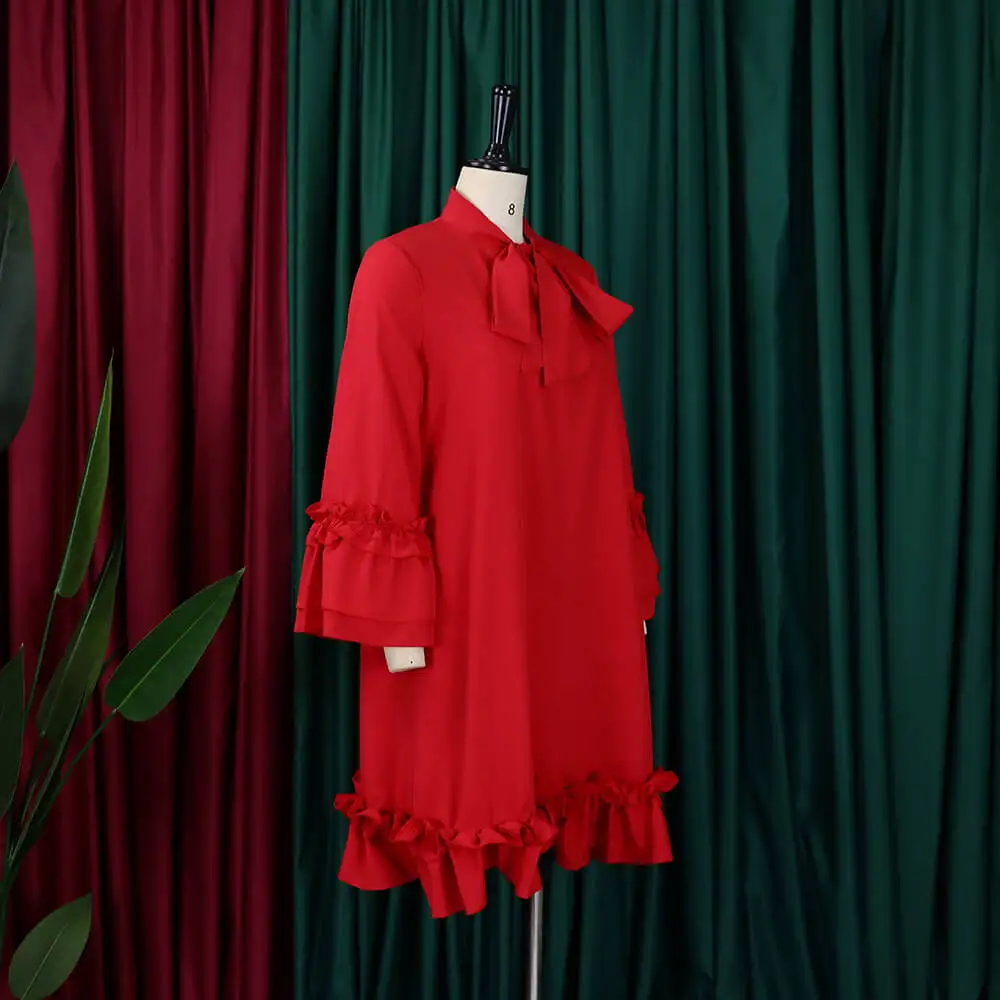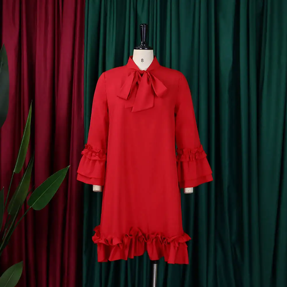 Women's Loose Casual Plus Size Ruffle Sleeve Tie Solid Color Foreign Trade Dresses