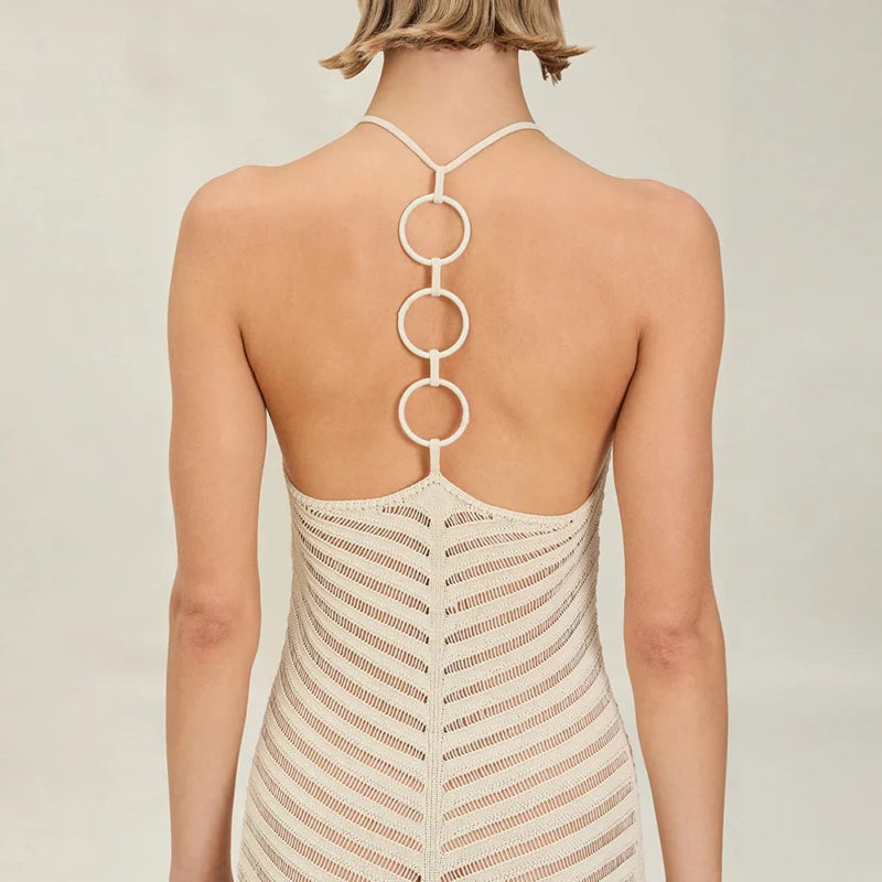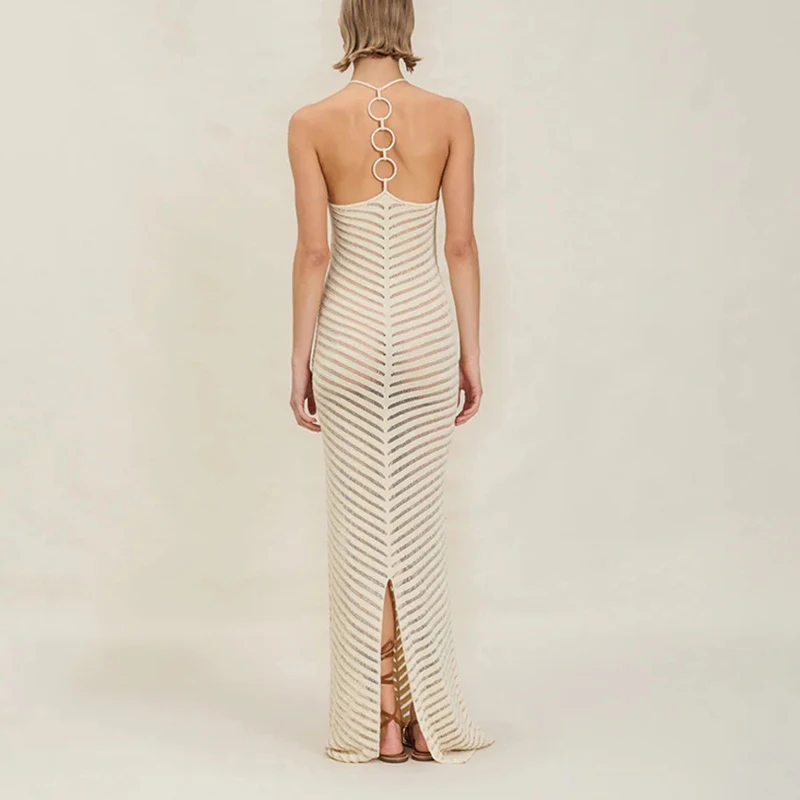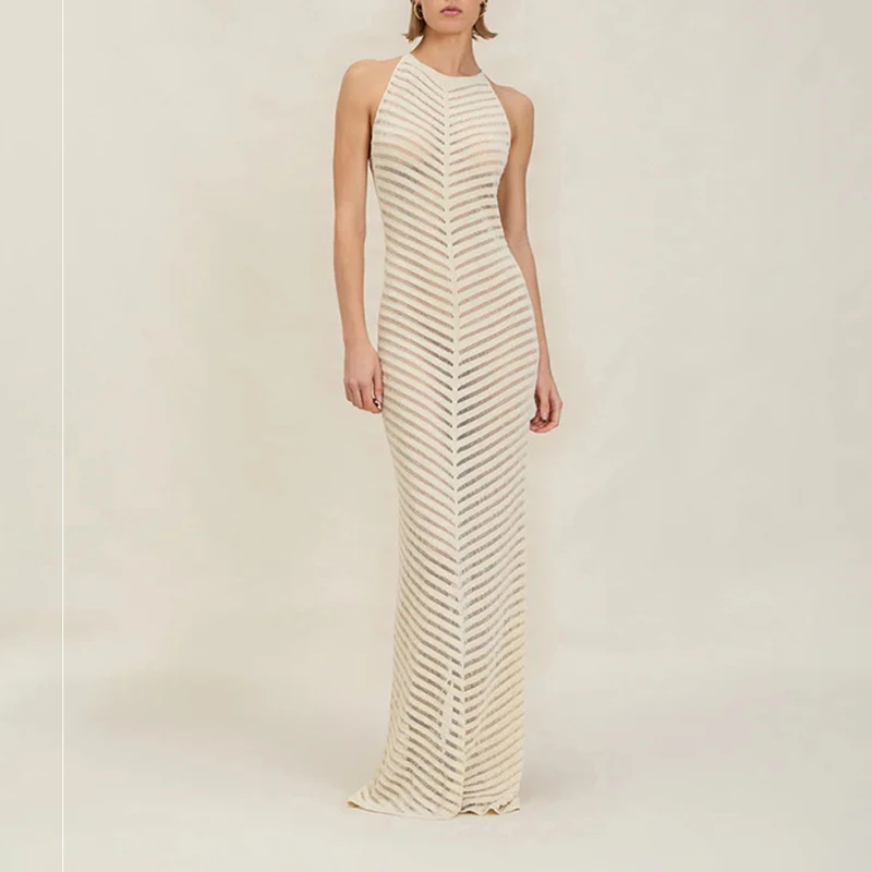 Women's O Neck Halter Knitted Long Dress Sexy Perspective Slim Sleeveless Beach Dress Fashion Backless Bodycon Wrap Hip Dresses