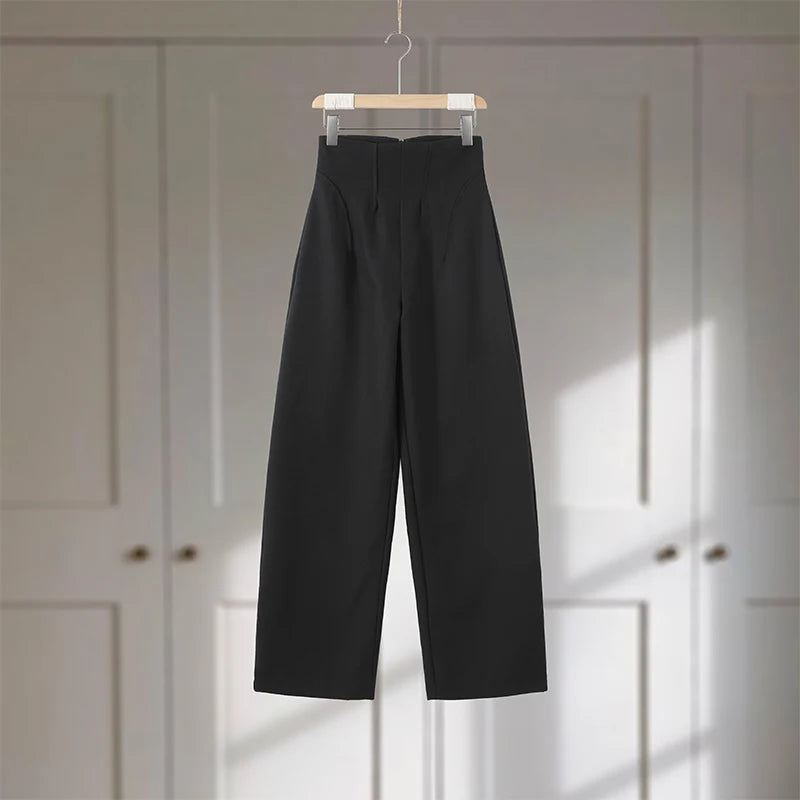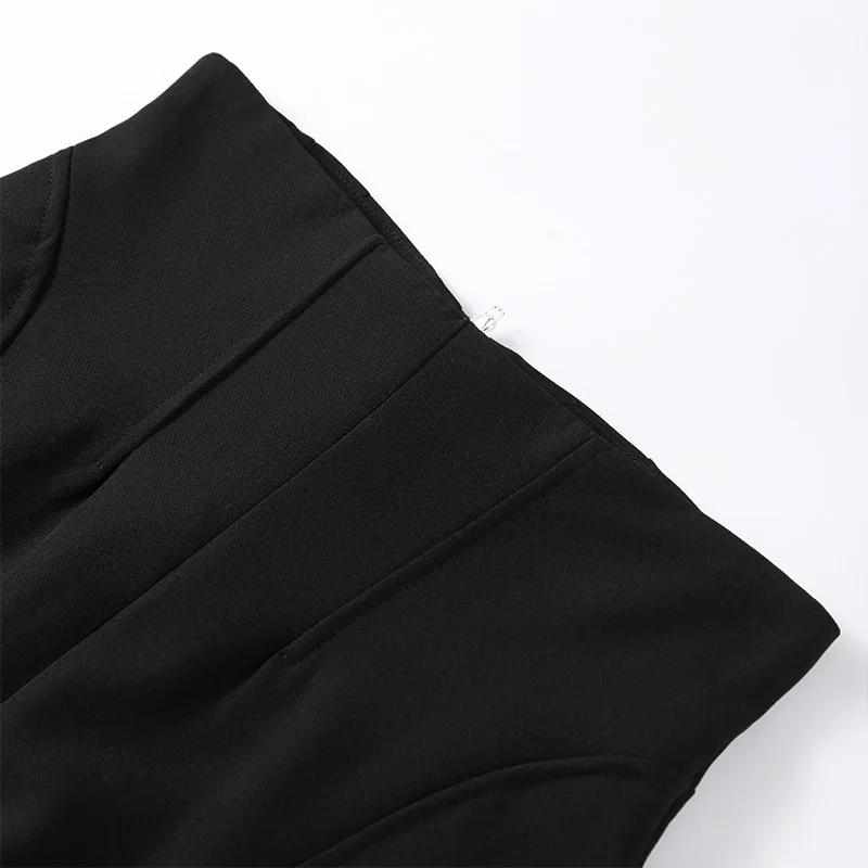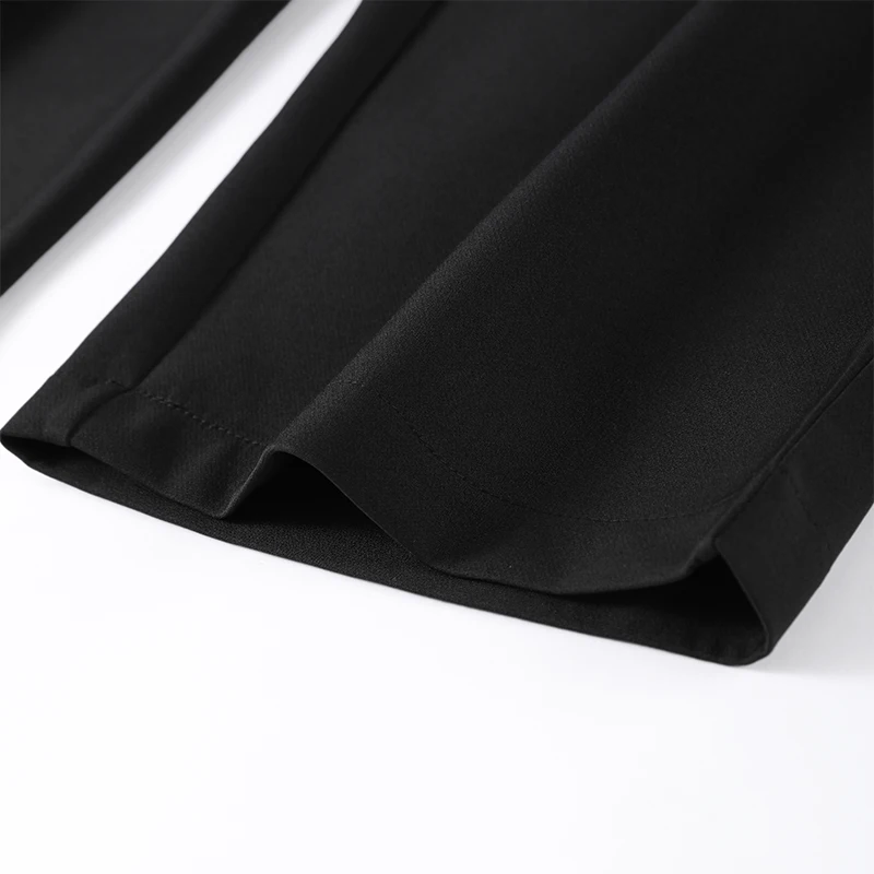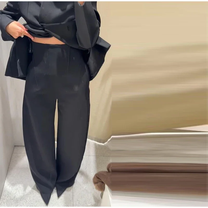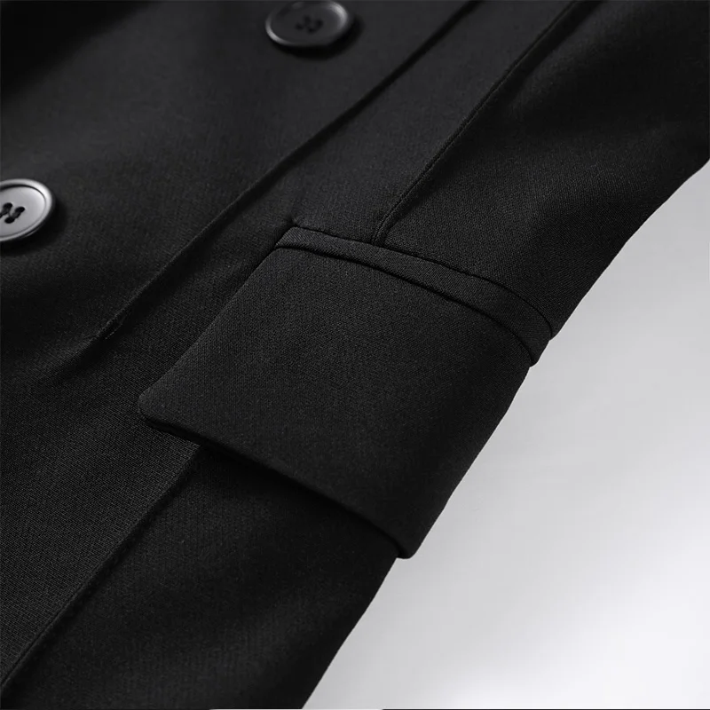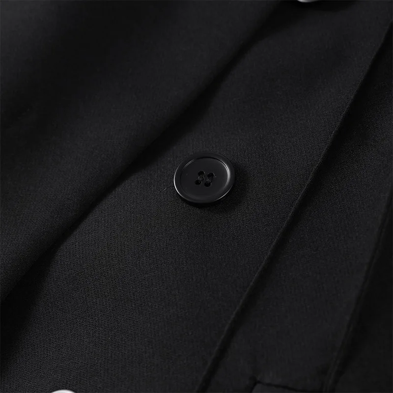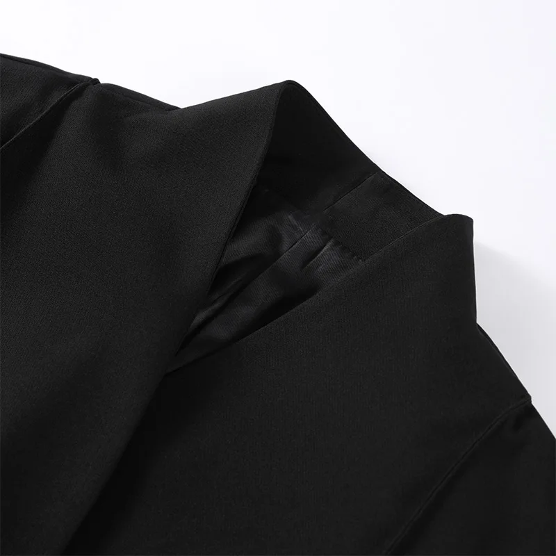 🌟 Command Attention with This Tailored Black Blazer Set, Featuring a Double-Breasted Jacket & Wide-Leg Pants for Power Dressing.