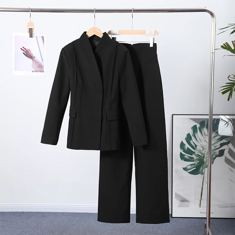 Women's Pant Set Office Elegant V-neck Full Sleeve Blazers High Waist Straight Pants Female Sets 2026 New Winter Woman Outfits