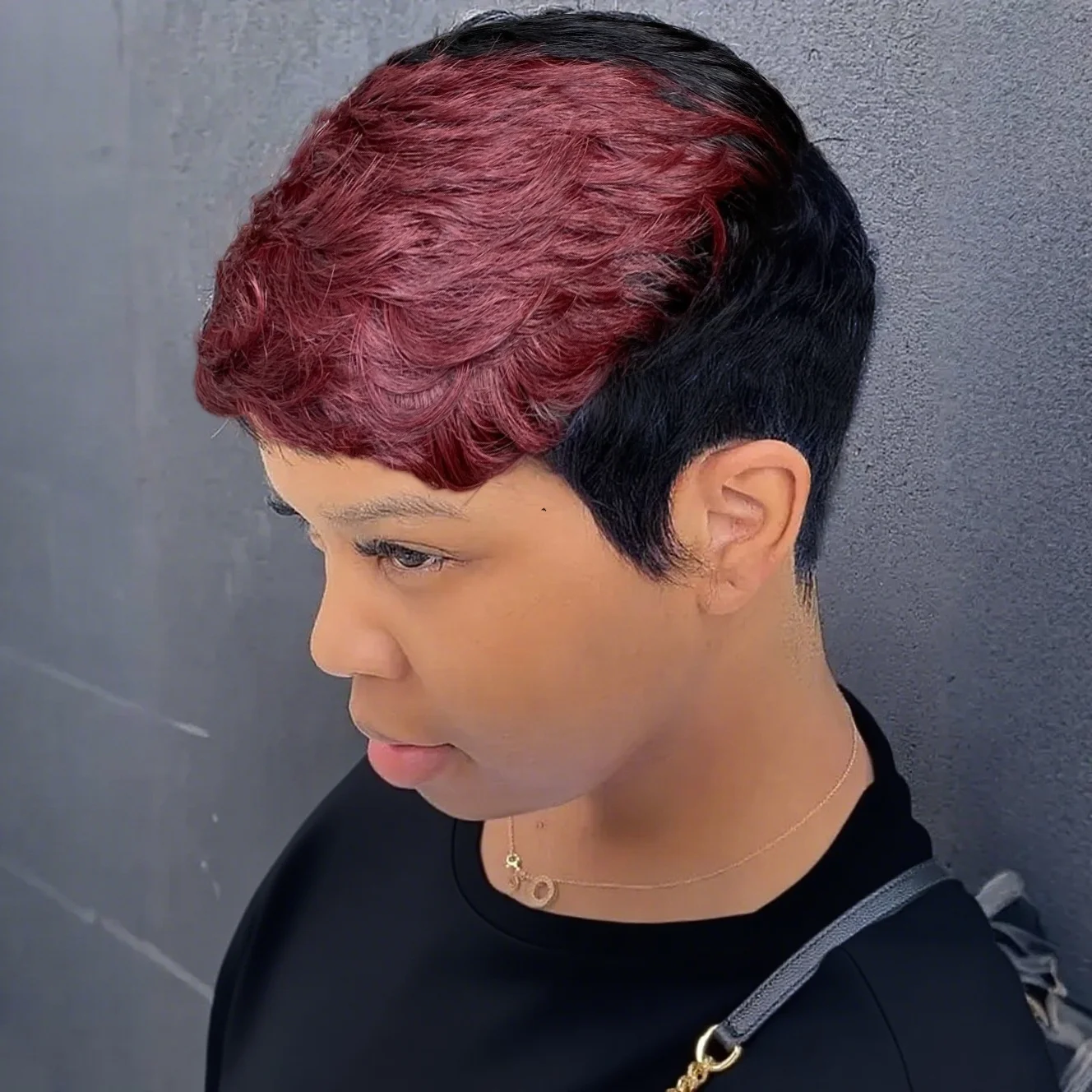 Women's Pixie Cut Wig 6 Inch Brazilian Remy Wavy Human Hair Layered Style Natural Look for full Machine wig