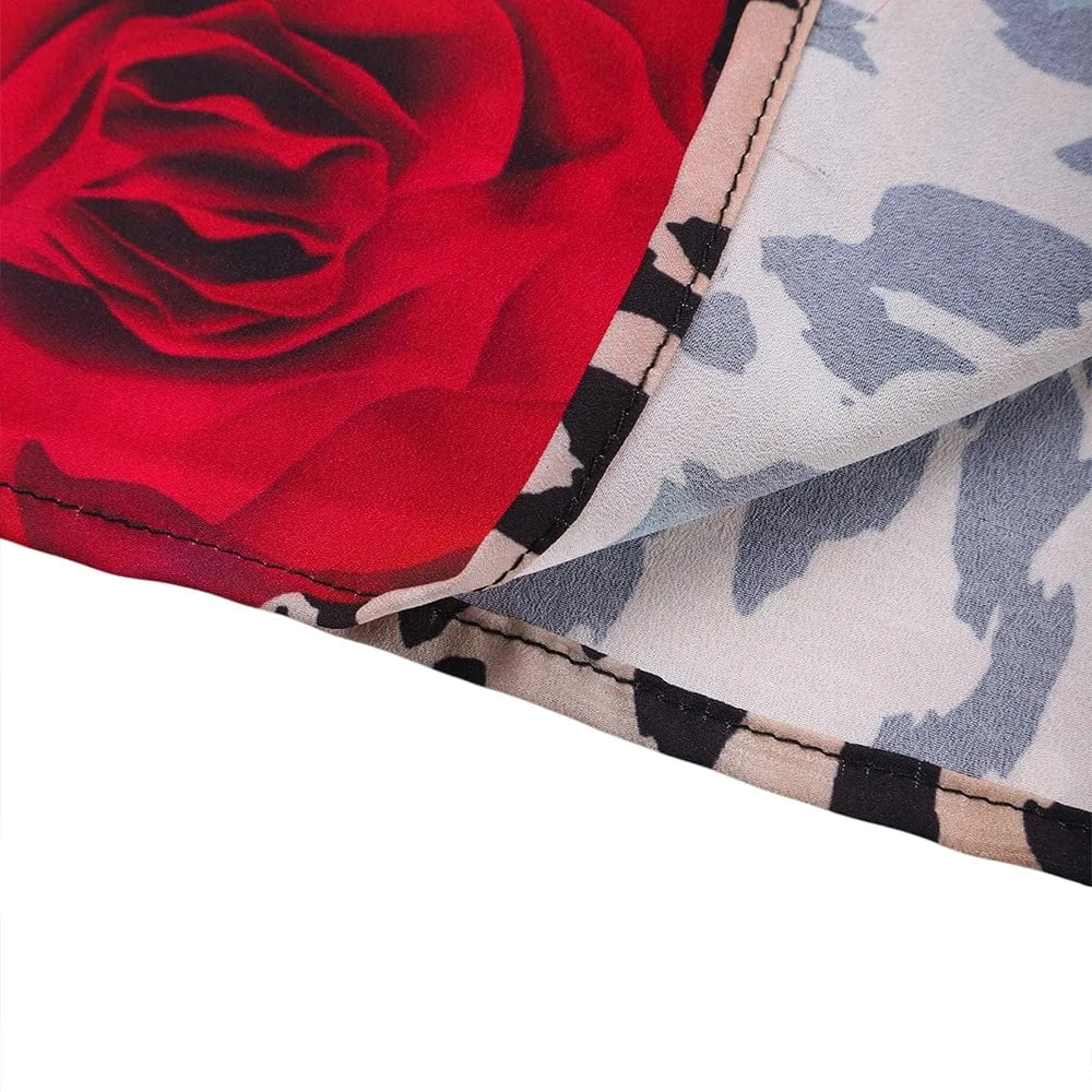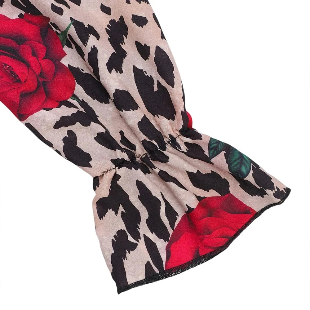 Women's Sexy Leopard Floral Printed Slash Neck Chiffon Blouse Autumn Spring Ladies Ruffle Casual Holiday Tops Size S-2XL