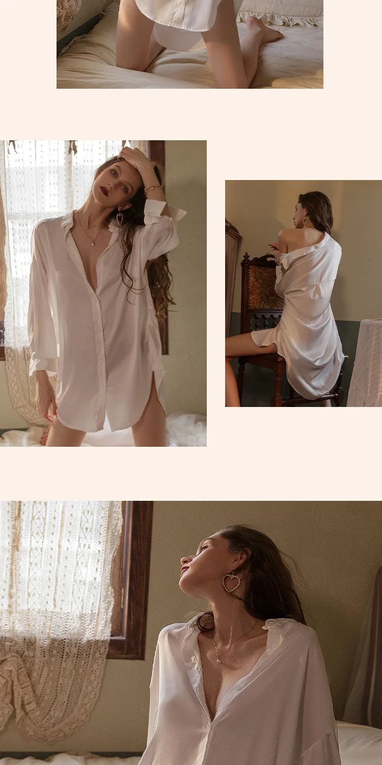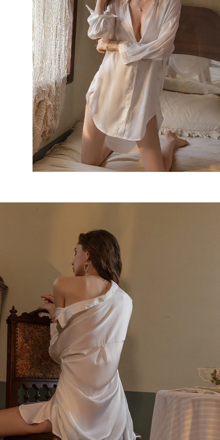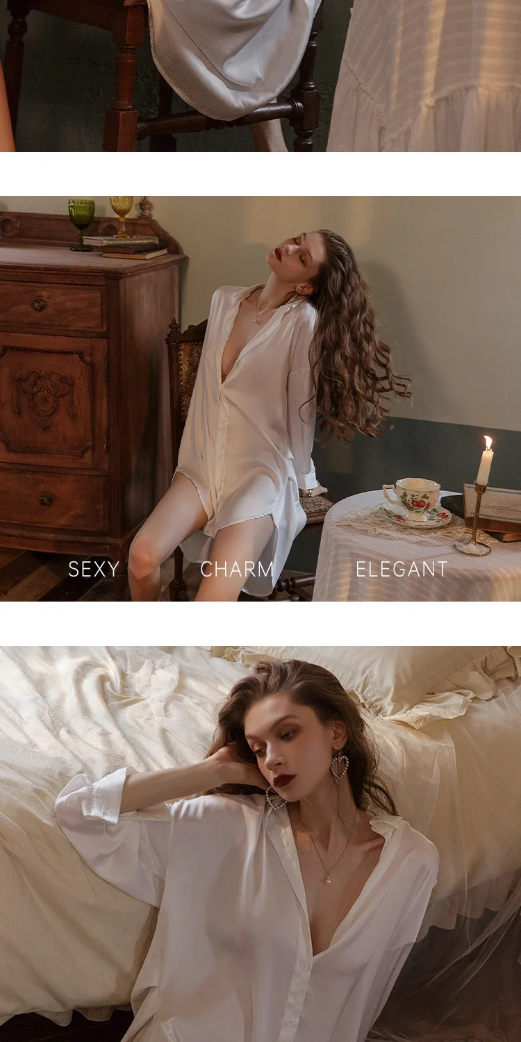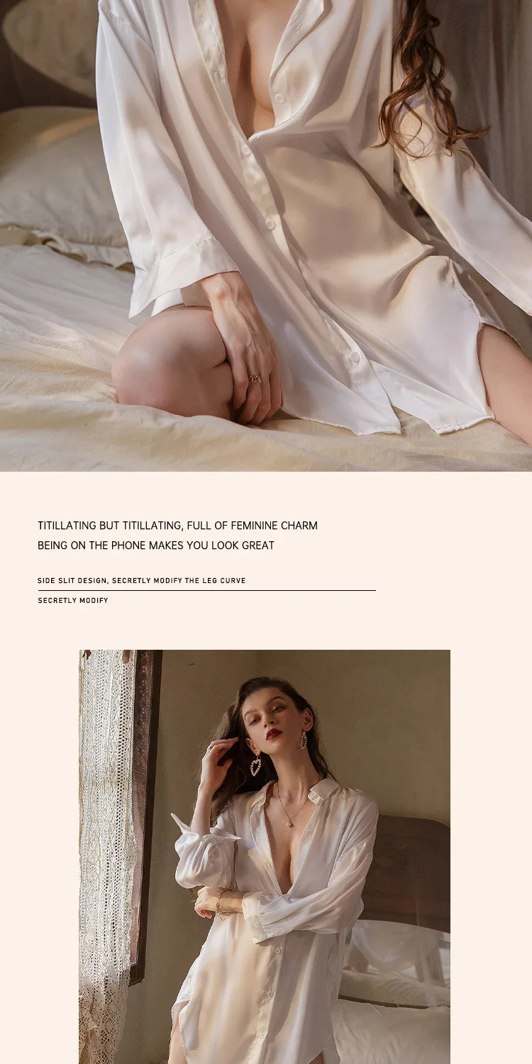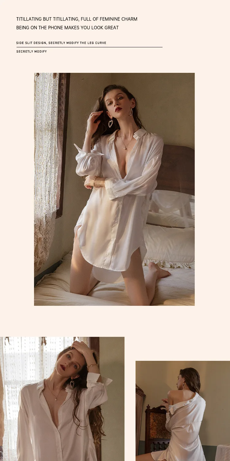 Women's Sexy Nightgown Chiffon Shirt Brand Logo Pajamas Underwear Uniform Temptation Night Dress Sleepwear Lingerie Dress 2023