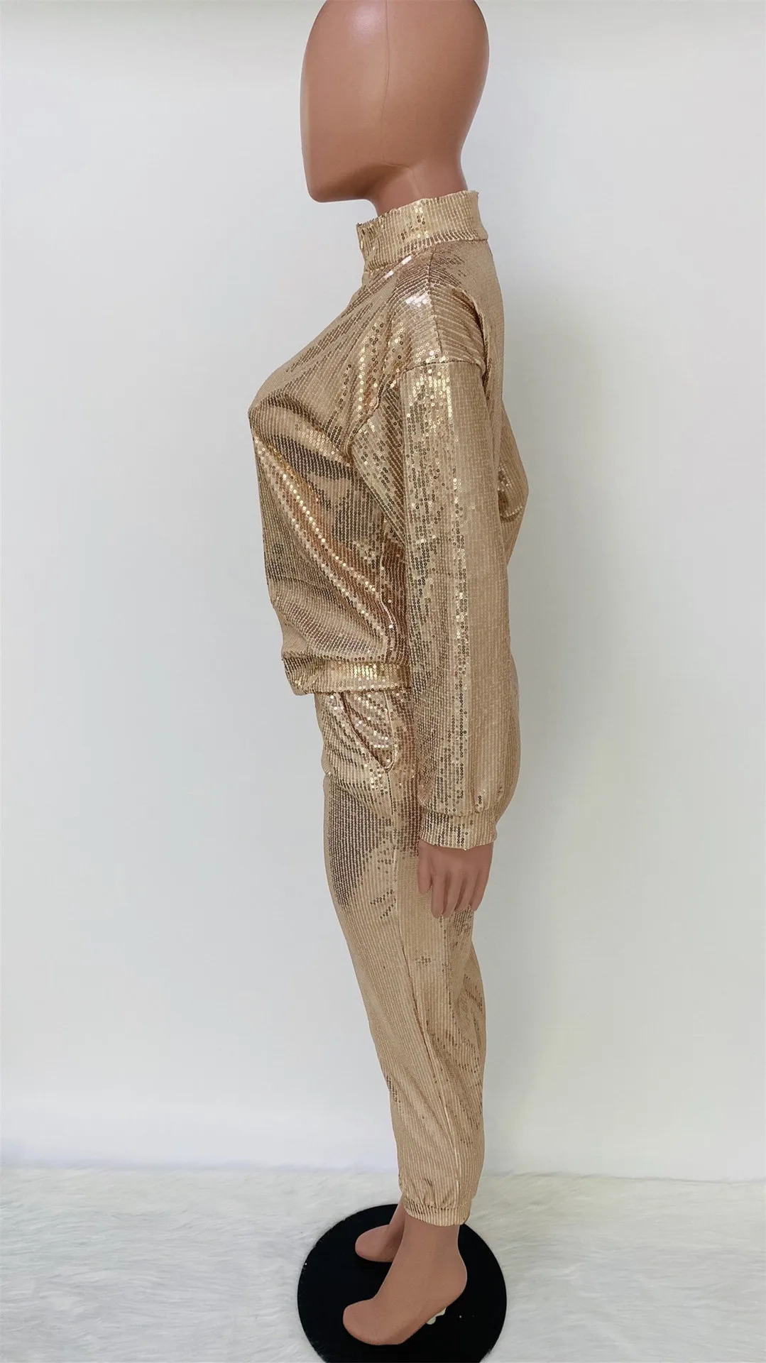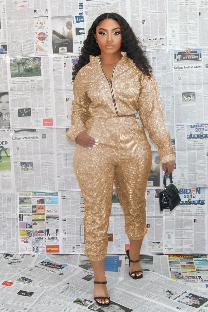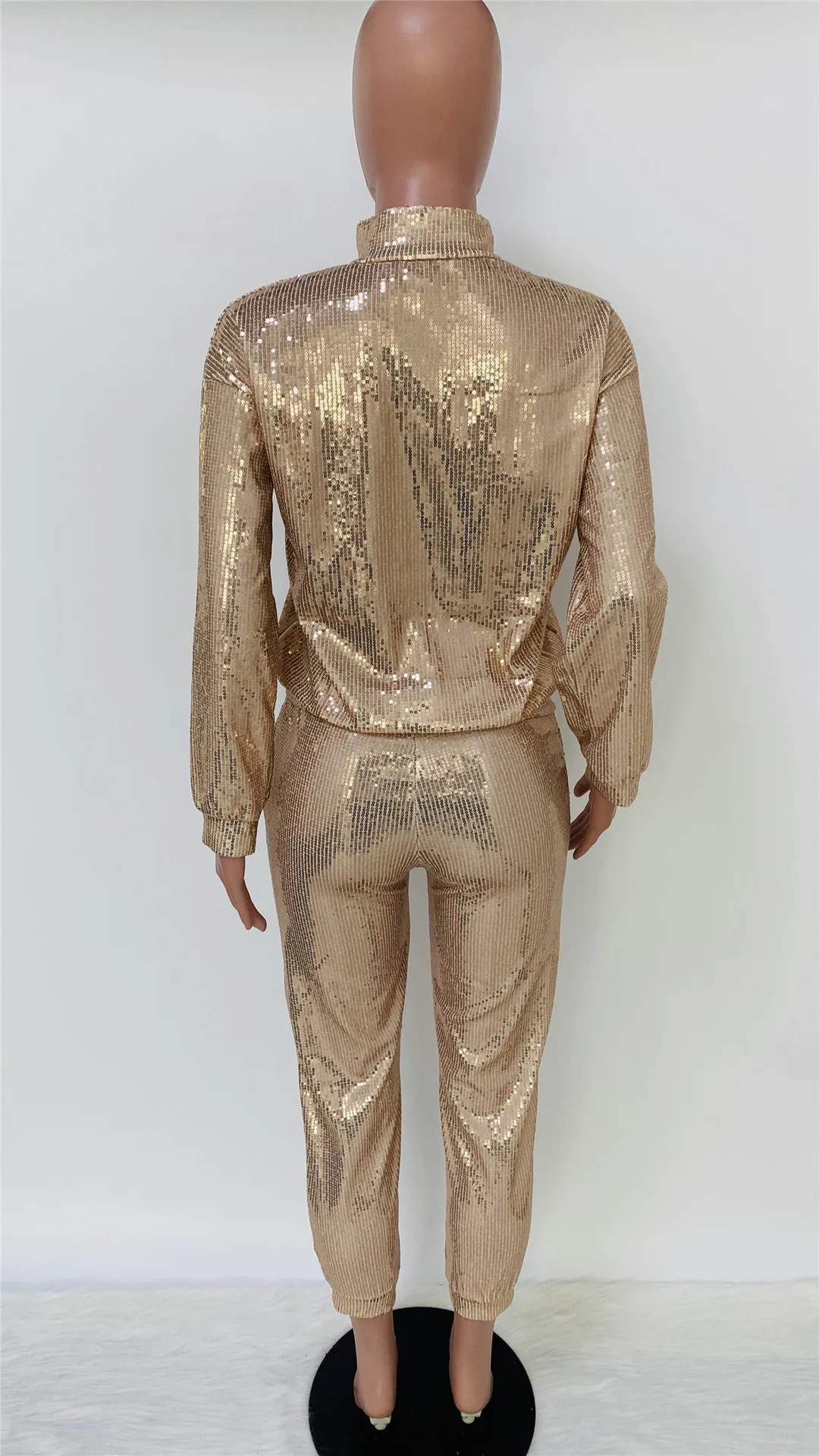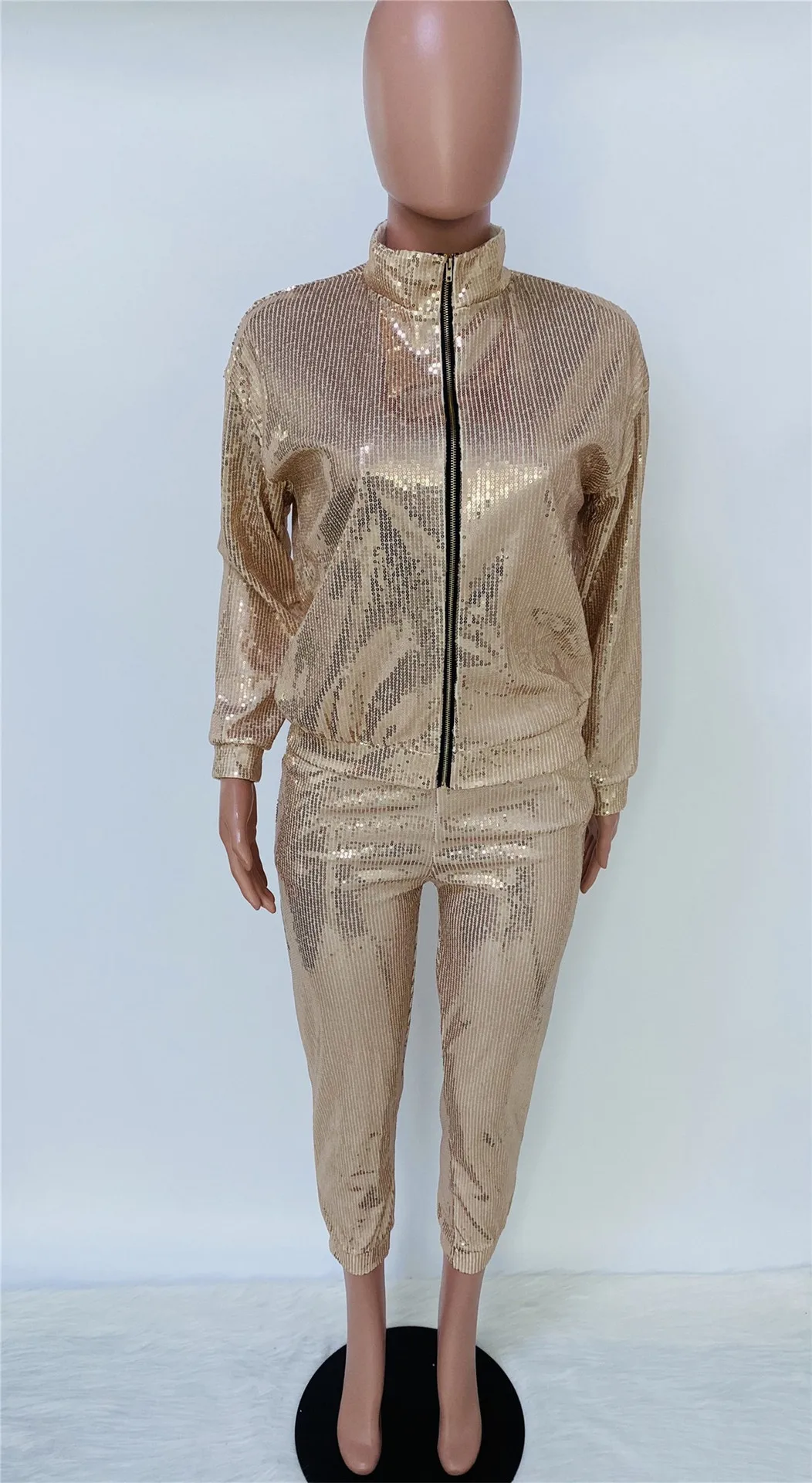 Women's Sexy Sequin Two Piece Outfits Glitter Jacket Pant Bodycon Jogger Tracksuit Clubwear Set