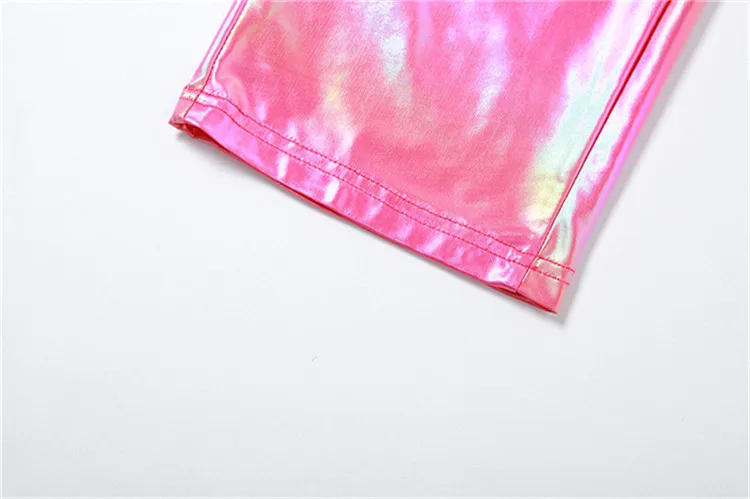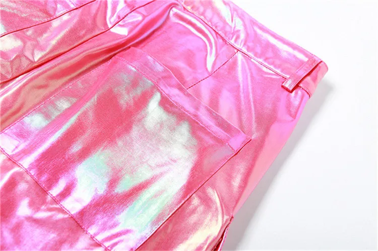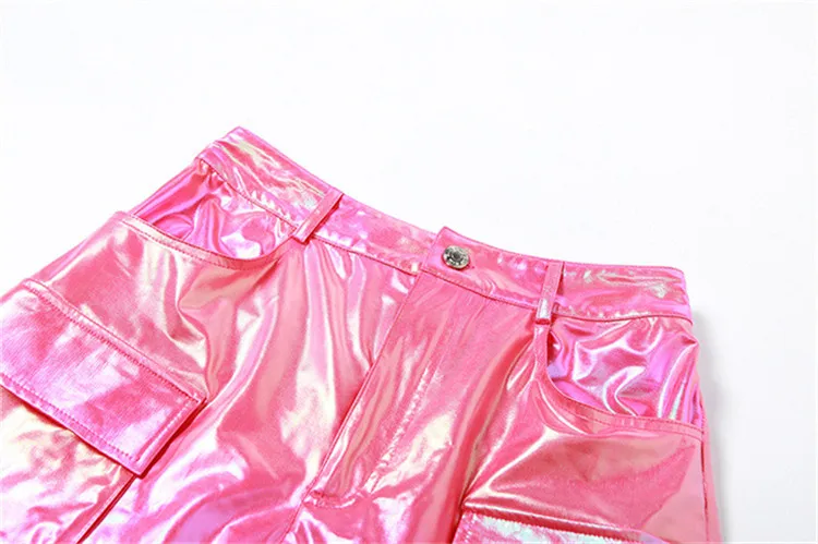 Women's Shiny Patchwork Hip Hop Pants Women Casual Straight Pocket Leg Trousers Ladies Bottoms