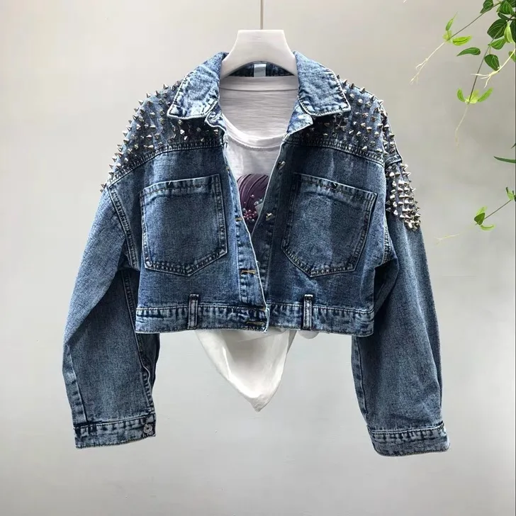 Women's short loose fall wear new fashion hip hop rivet jean jacket denim jacket for girl