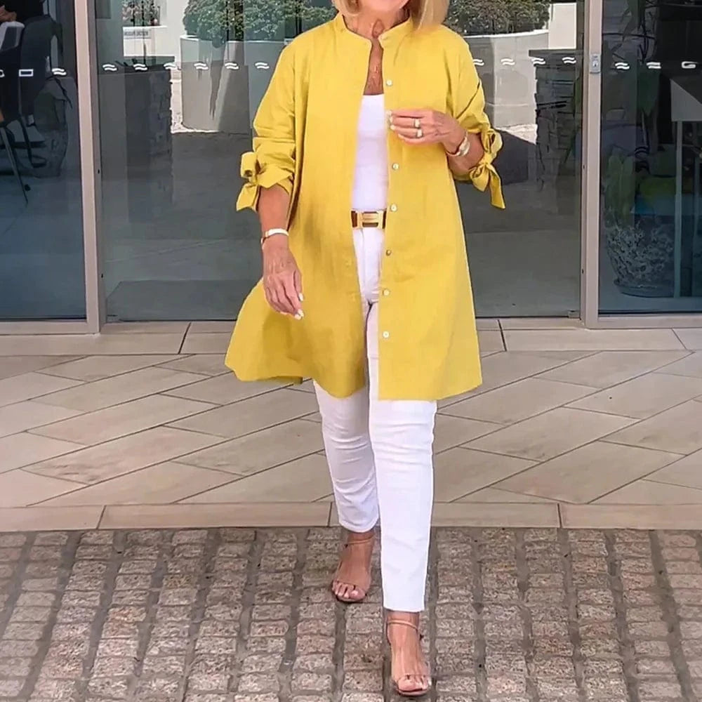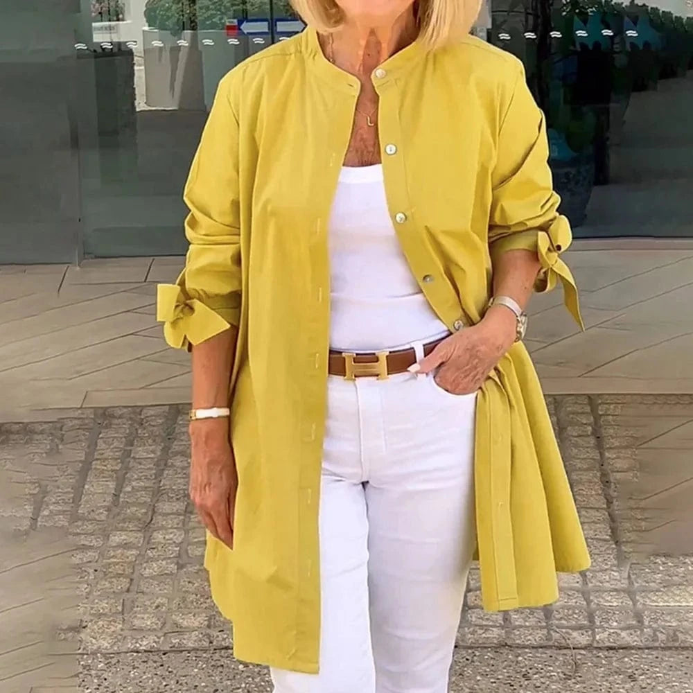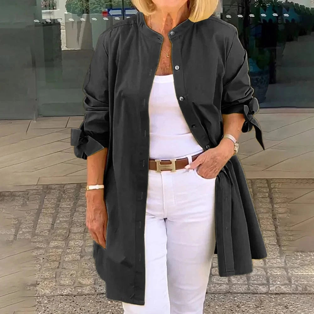 Women's Solid Long Sleeve Stand Collar Shirts Blouse Spring Autumn Ladies Single Breasted Casual OL Office Tops Size S-3XL