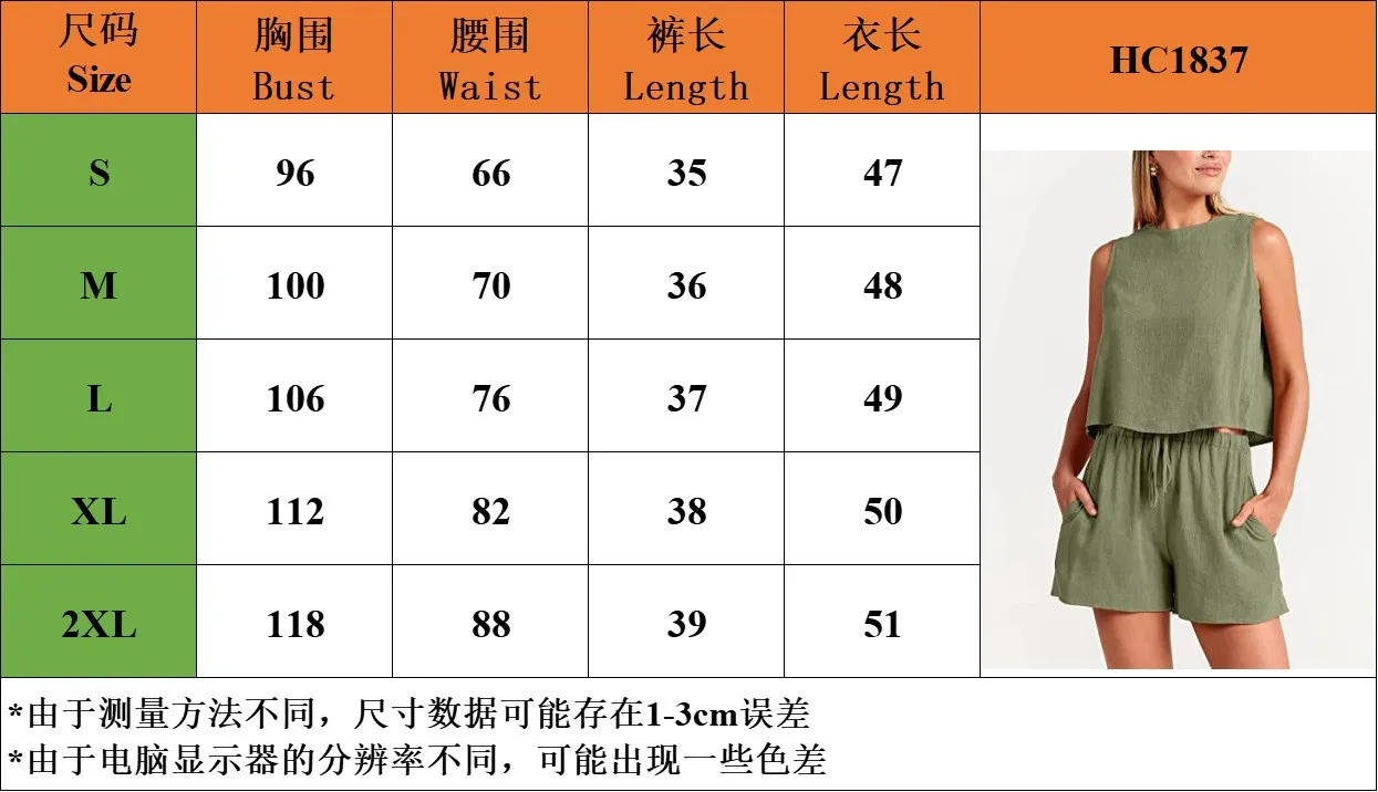 Women's Summer Sleeveless Crop Top Tank and High Waisted Shorts Romper Pockets 2 Piece Outfits Shorts Sets