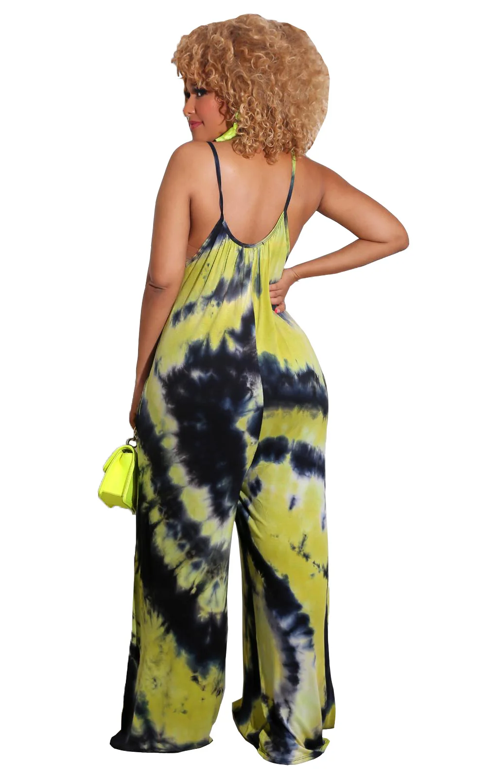 Women's Summer Tie Dye Strap Sexy Beach Romper Casual Suspenders Wide-leg Jumpsuits Sexy Street wear Overall Play suits