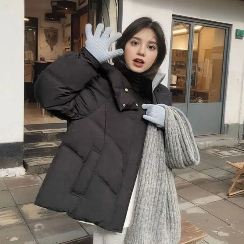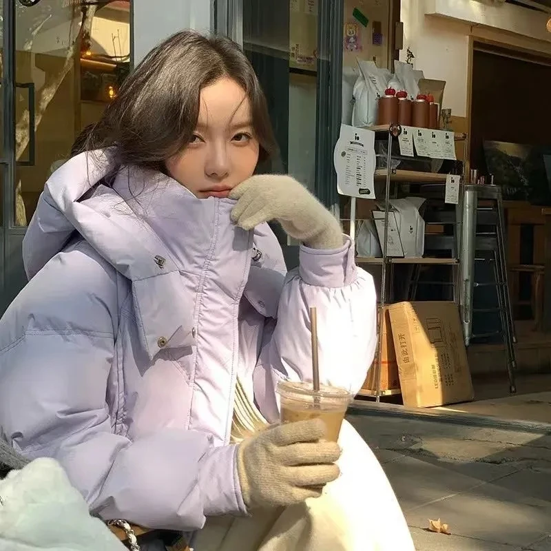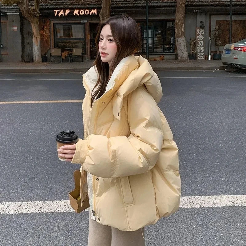 Women's Winter Hooded Down Cotton Jacket New Short Korean Y2K Thick Warm Parkas Coat Loose Casual College Windproof Outwear Top
