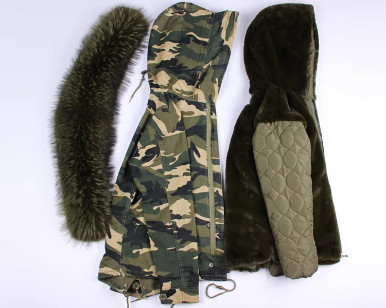 Winter Women Camouflage Parka Raccoon Fur Hood Long