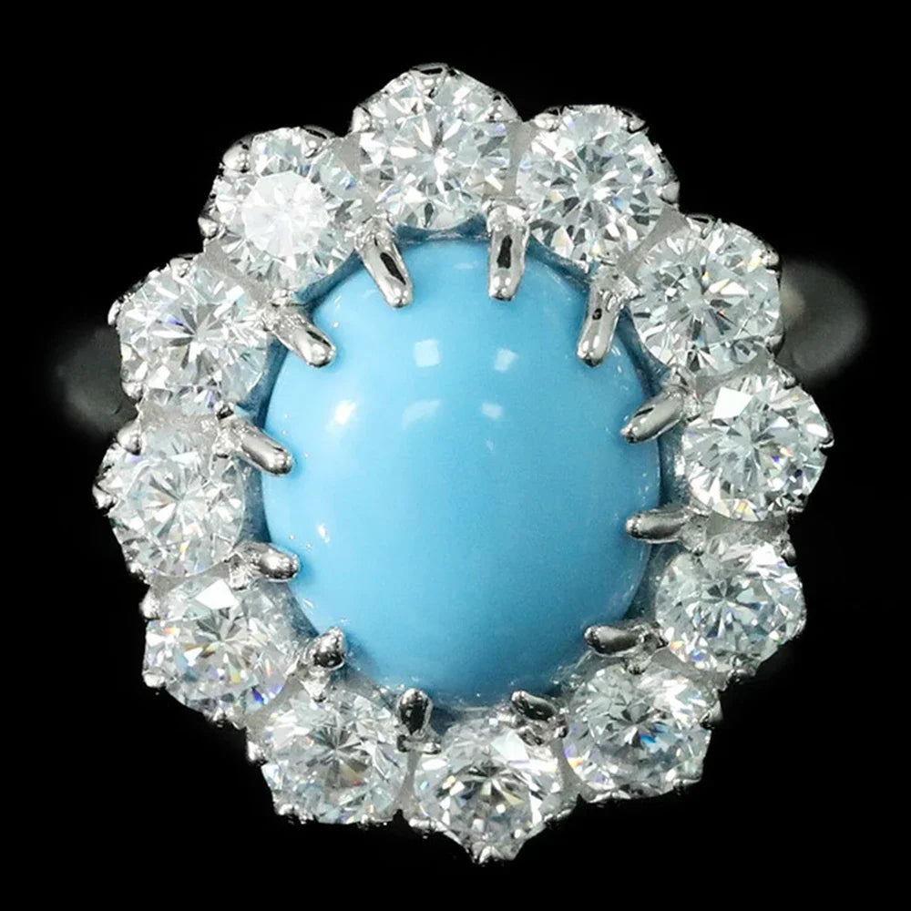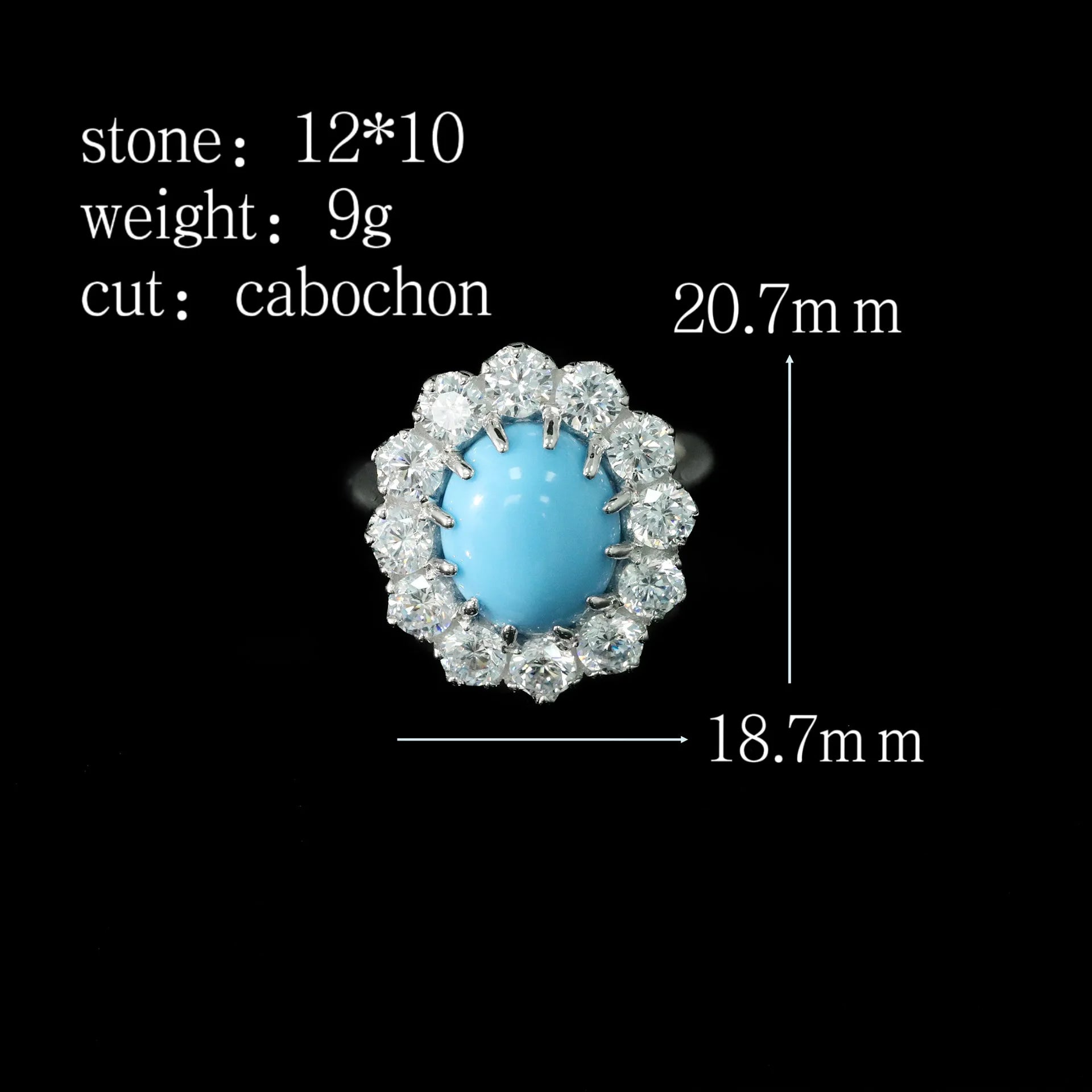 WUIHA 925 Sterling Silver Oval Cut Lab Sapphire Turquoise High Carbon Diamonds Gemstone Wedding Engagement Rings Fine Jewelry