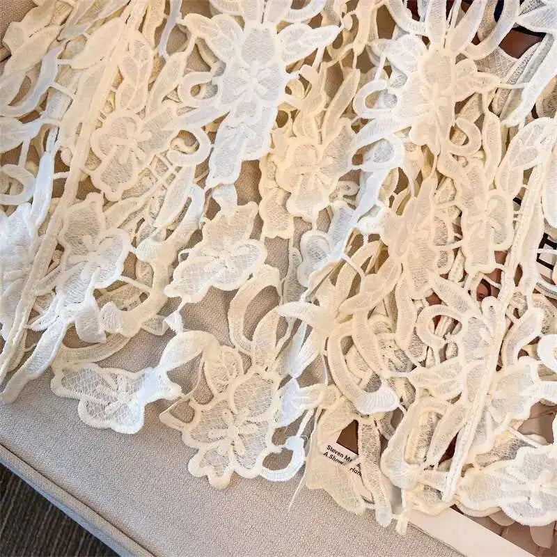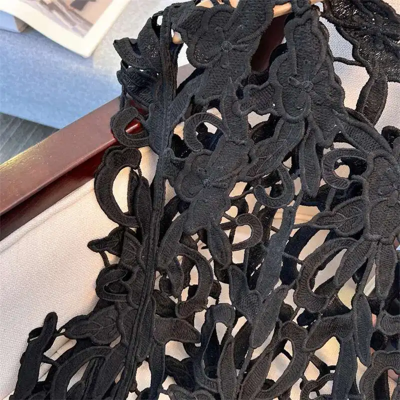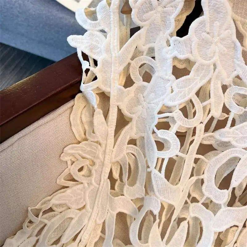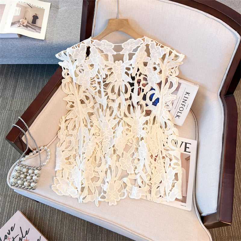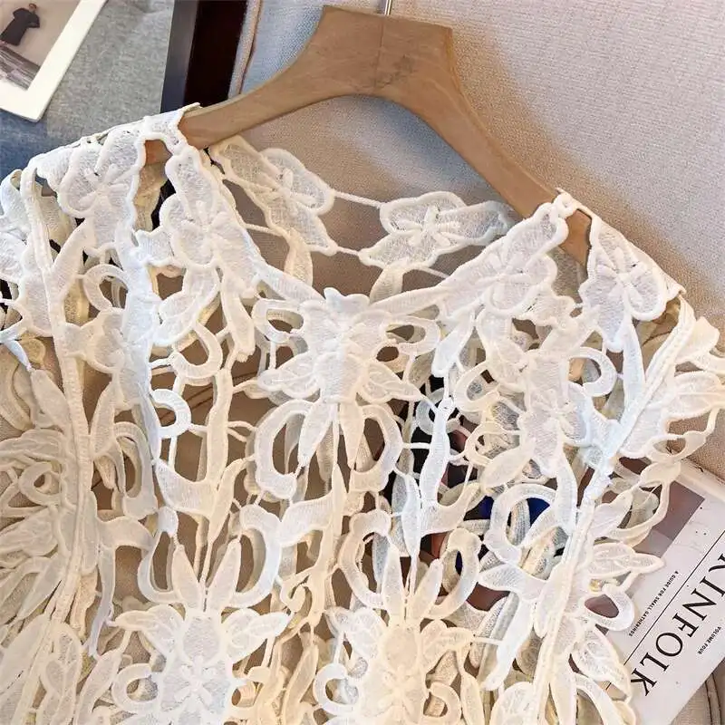 XFPV Solid Color Summer Sunscreen Tops For Women Round Neck Sleeves Hollow Out Design Clothing Female New Fashion 22D1493