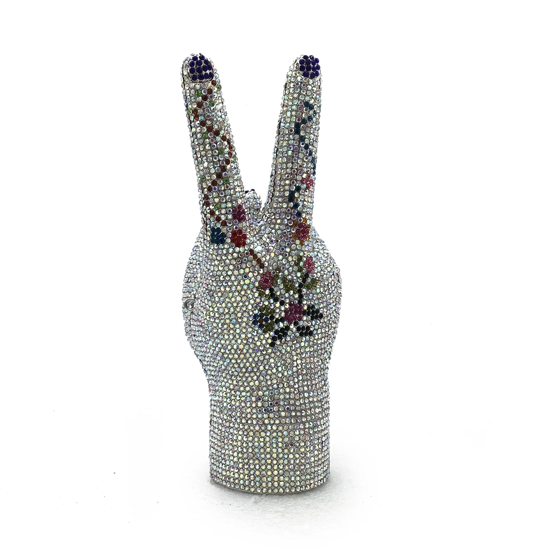 XIYUAN Victory Hand Crystals Evening Bags Women Rhinestones Purses Metallic Clutch Purse Lady Fashion Handbags Wedding Party Bag