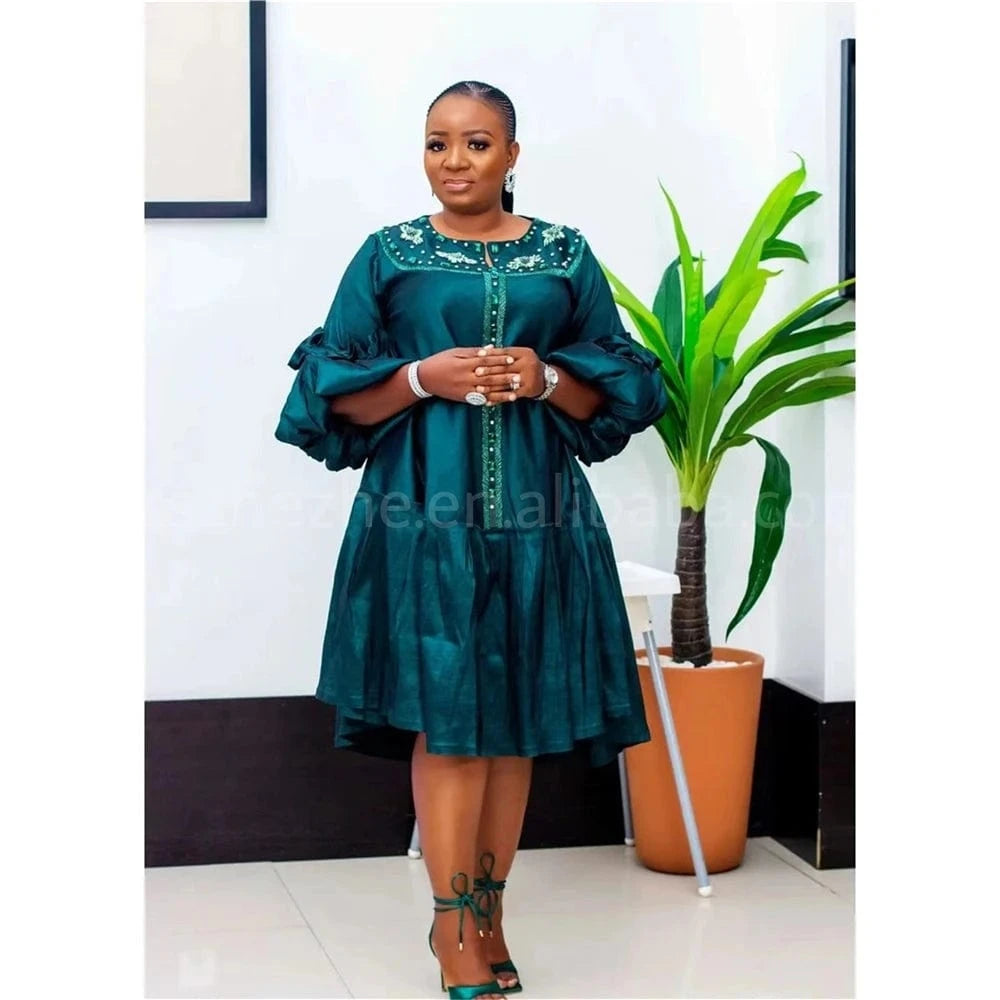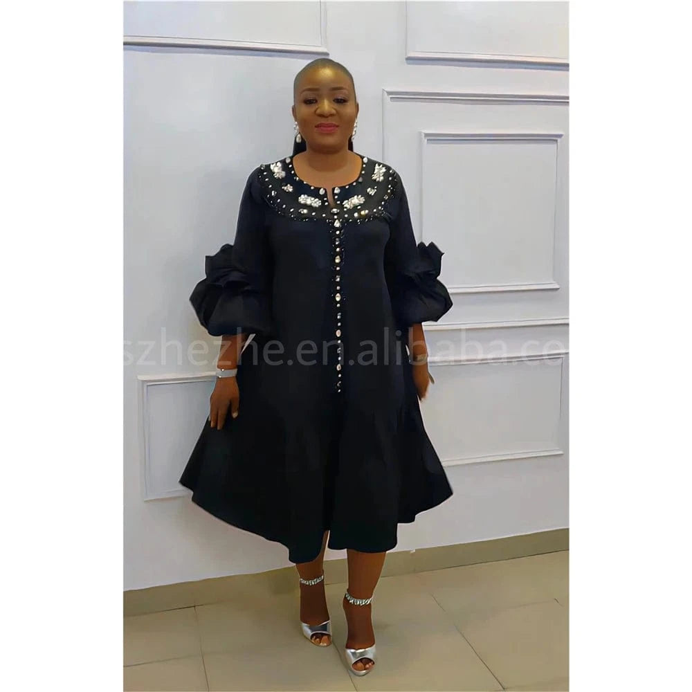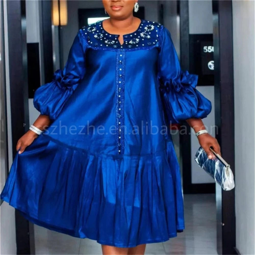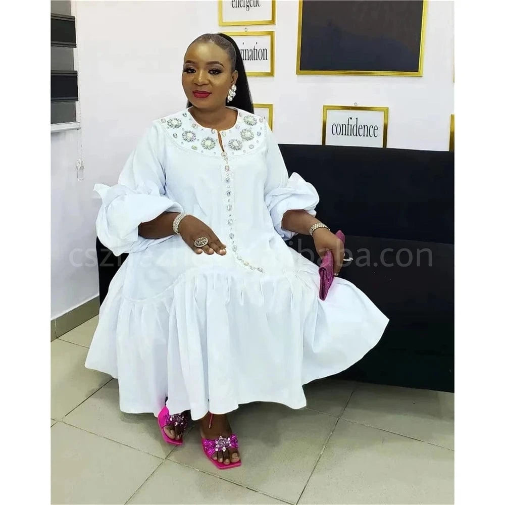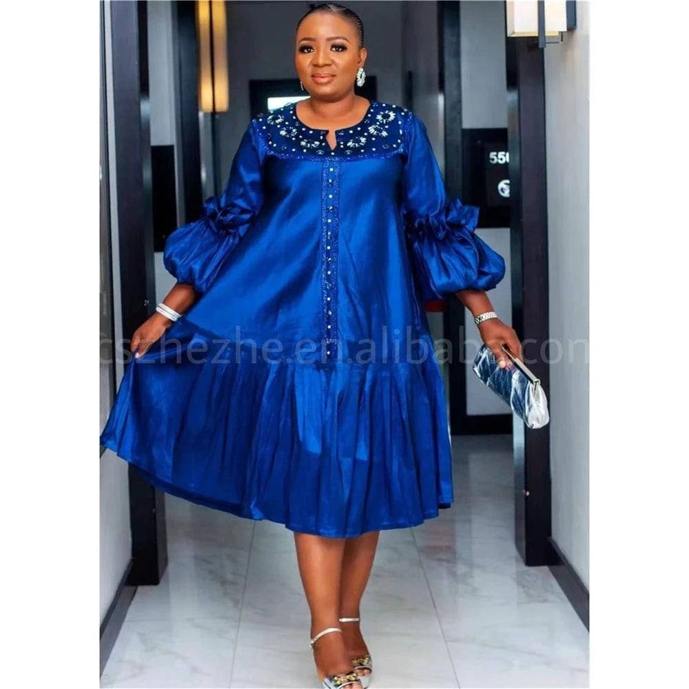 xxl-5xl Plus Size 2024 Spring Long Sleeve Satin Muslim Robe Dress Elegant Loose Maxi Beaded Dress Party Dress African Women