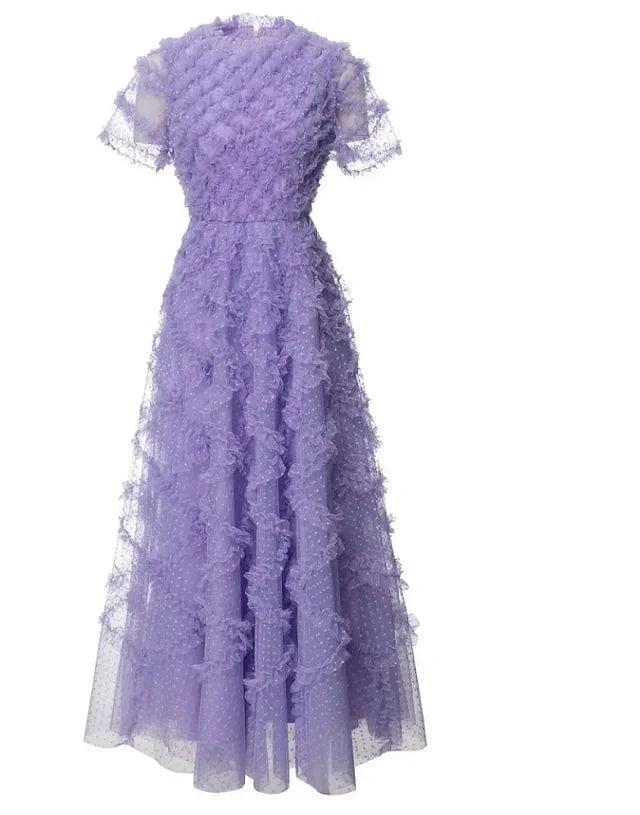 XXXL Long Dress 2024 Spring Summer Party Special Occasion Women Polka Dot Print Allover Cascading Ruffle Flower Mesh Maxi Dress