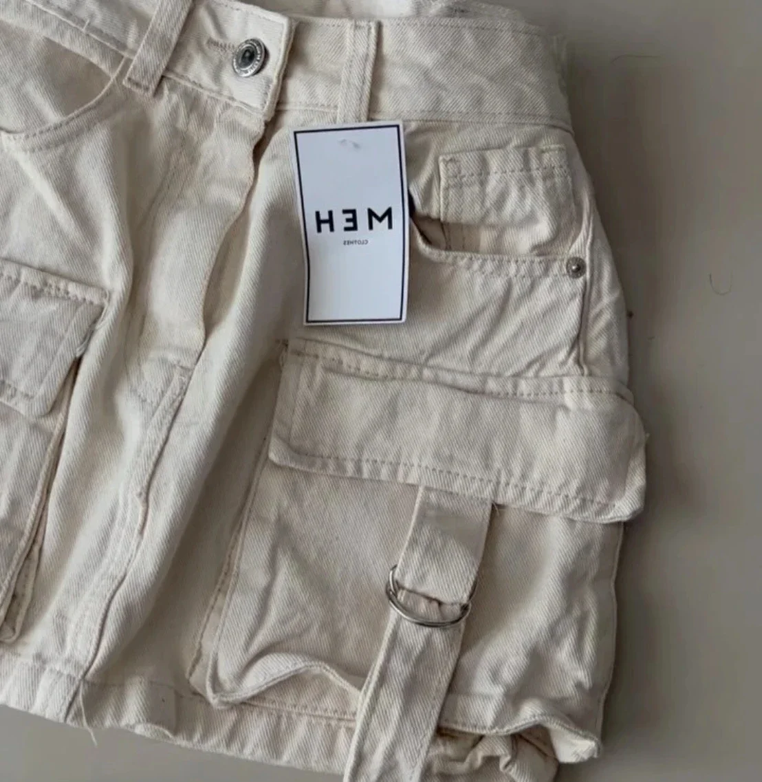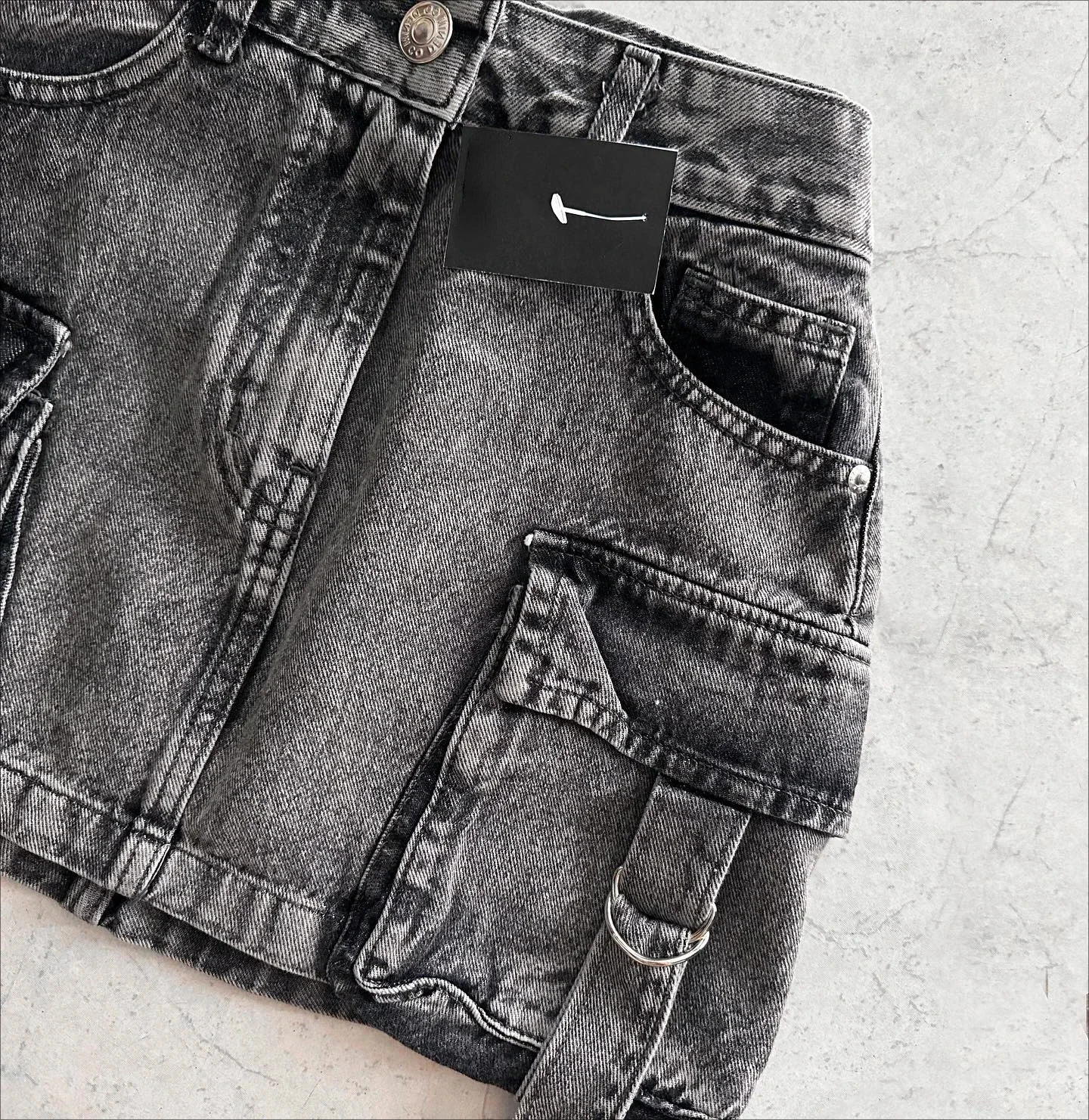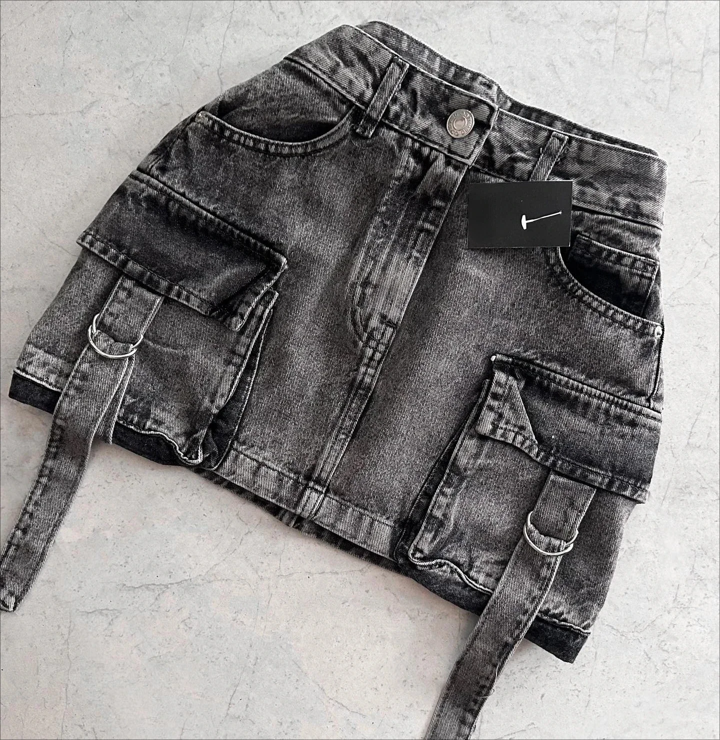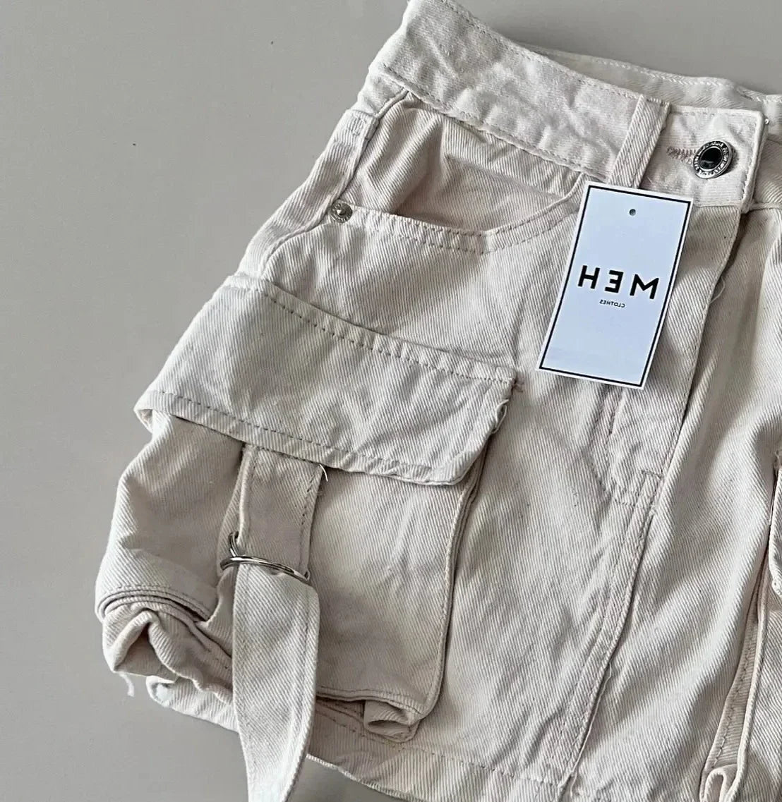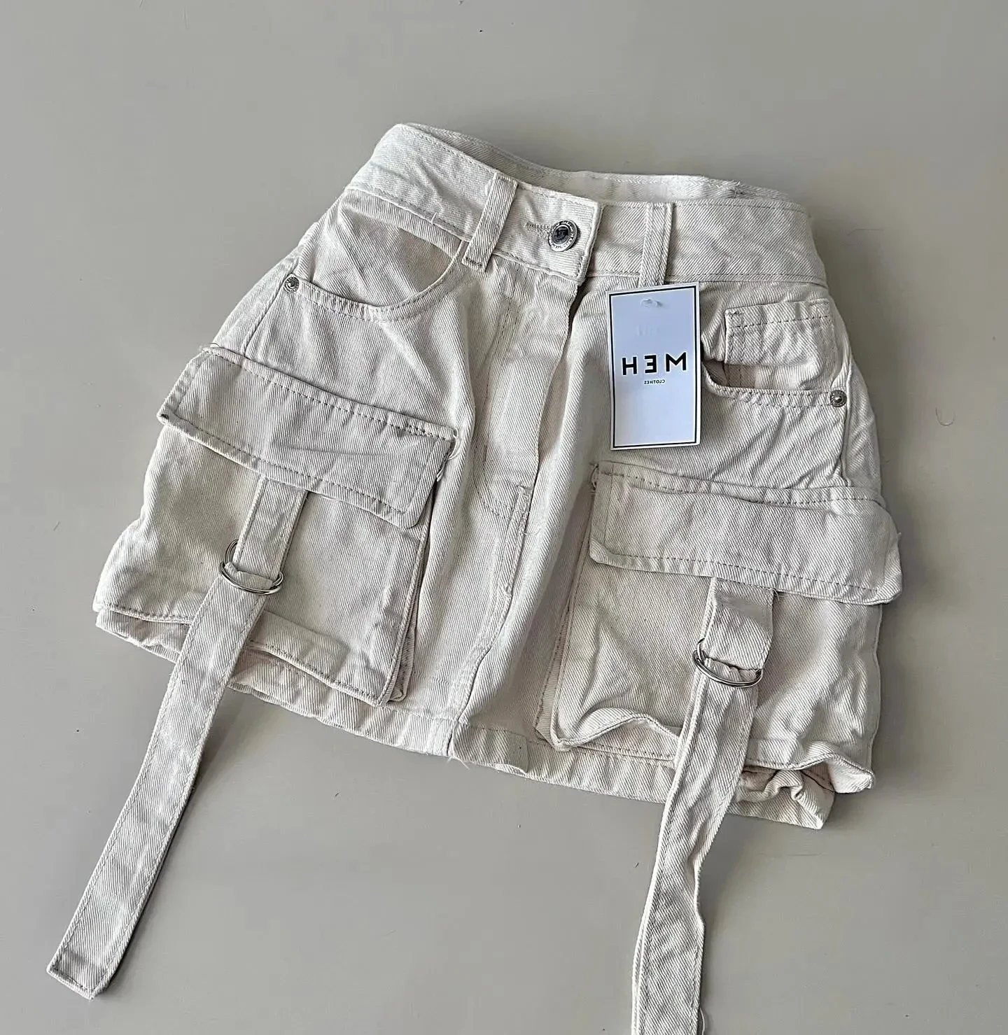 Y2K Short Skirt Fashion Retro Blue Multi Pocket Denim Shorts Womens Gothic Cargo Baggy Denim Shorts High Waist Slim Mini Skirt