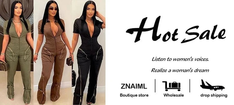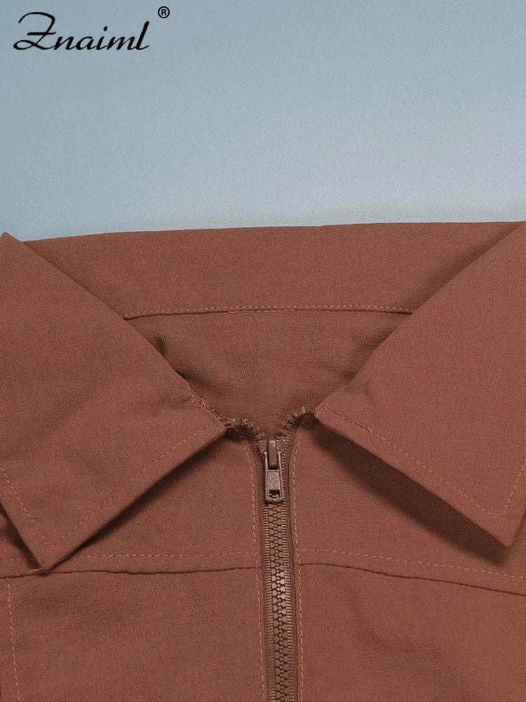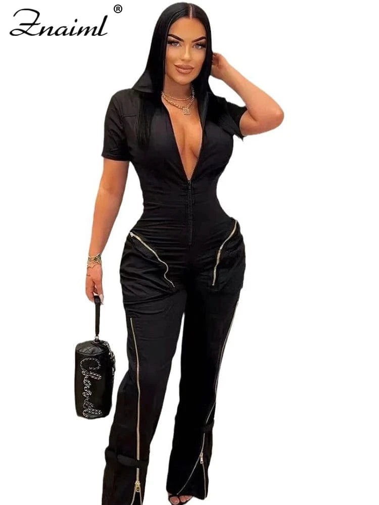 Znaiml Safari Style Short Sleeve Zipper Pocket Jumpsuit Women Fashion Cargo Pants One Piece Overalls Streetwear Playsuit Rompers